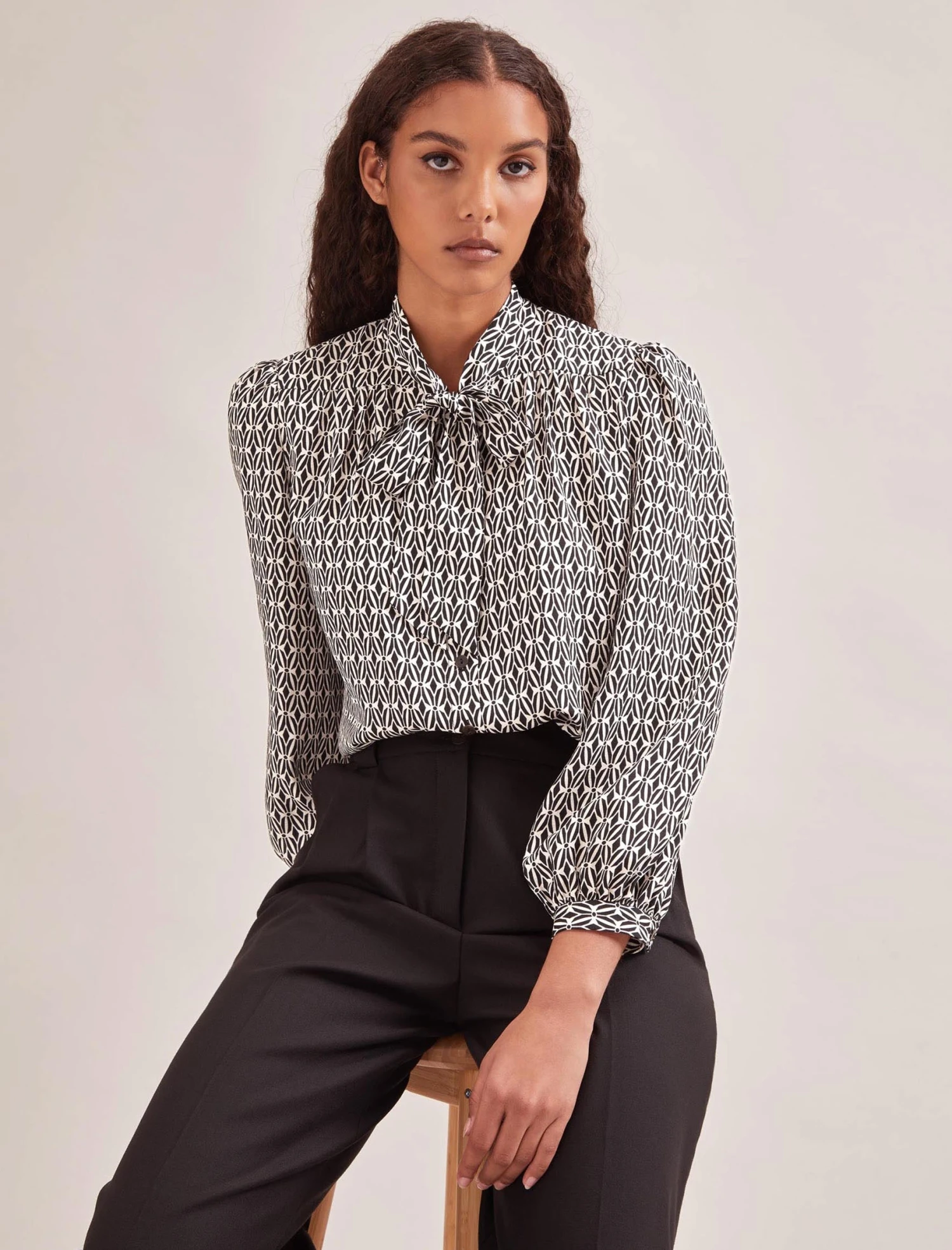 It goes without saying that day-to-night tops are a mainstay of any capsule wardrobe – whether you’re in the office, WFH or meeting friends for drinks. And when they’re machine-washable and crease-resistant, like Aubrey, you can’t go wrong. Adding graphic interest to smart staples, team it with our Arlo leather skirt for an edgy spin or a tailored trouser such as Terence or Clement.