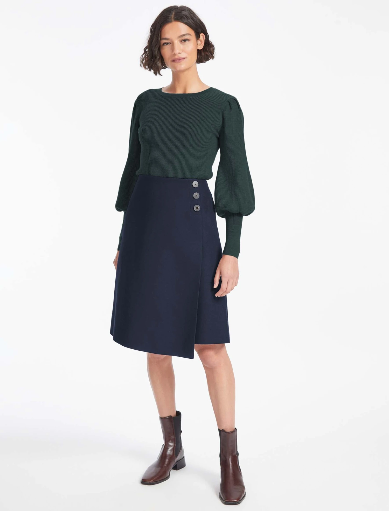 An elegant knee length skirt, Audrey offers a feminine take on the tailoring trend. It’s cut from a felted wool in a flattering A-line silhouette with smart summary detailing. Style with a crisp shirt and slender heel.