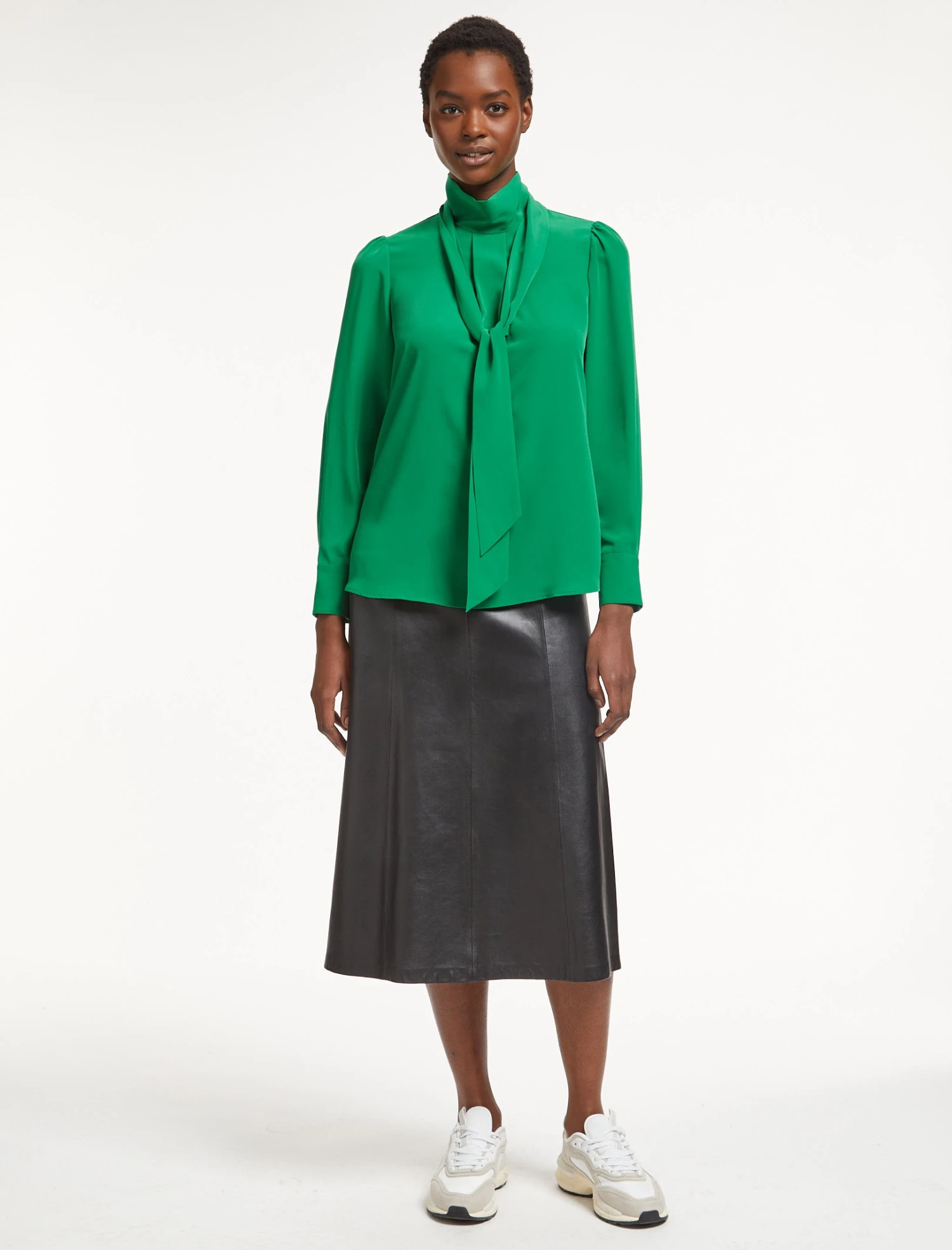 A carryover from previous seasons, Bianca will be your go-to day-to-night top for spring. It is cut from a Techni crepe-de-chine, which has the look and feel of a luxe washed silk but is machine washable. A great layering piece under our suiting, the scarf detail adds polish and poise, whether you’re in the office or at dinner with friends.