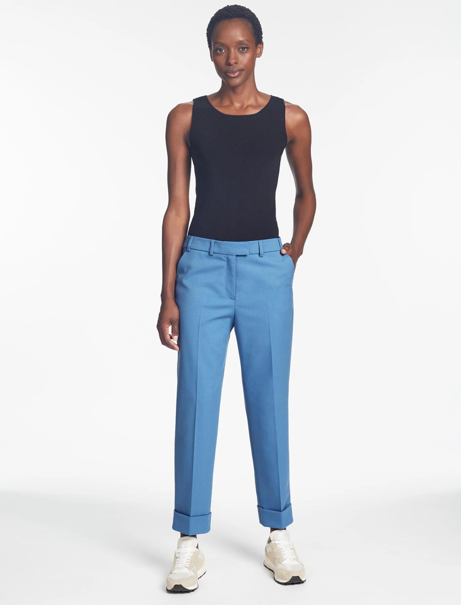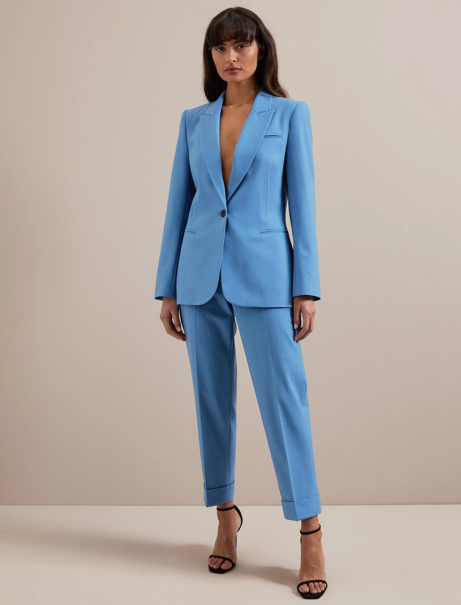 After a season of dark hues and dull days, what better than a bright-blue iteration of our much-loved Clement trouser to lift your mood and your wardrobe? This season’s Clement features the same design details, in stretch-wool suiting material with a turn-up. A great multi-tasker for work or play, simply add a crisp white T-shirt and trainer or dress it up with the matching Jamie blazer and a shirt.