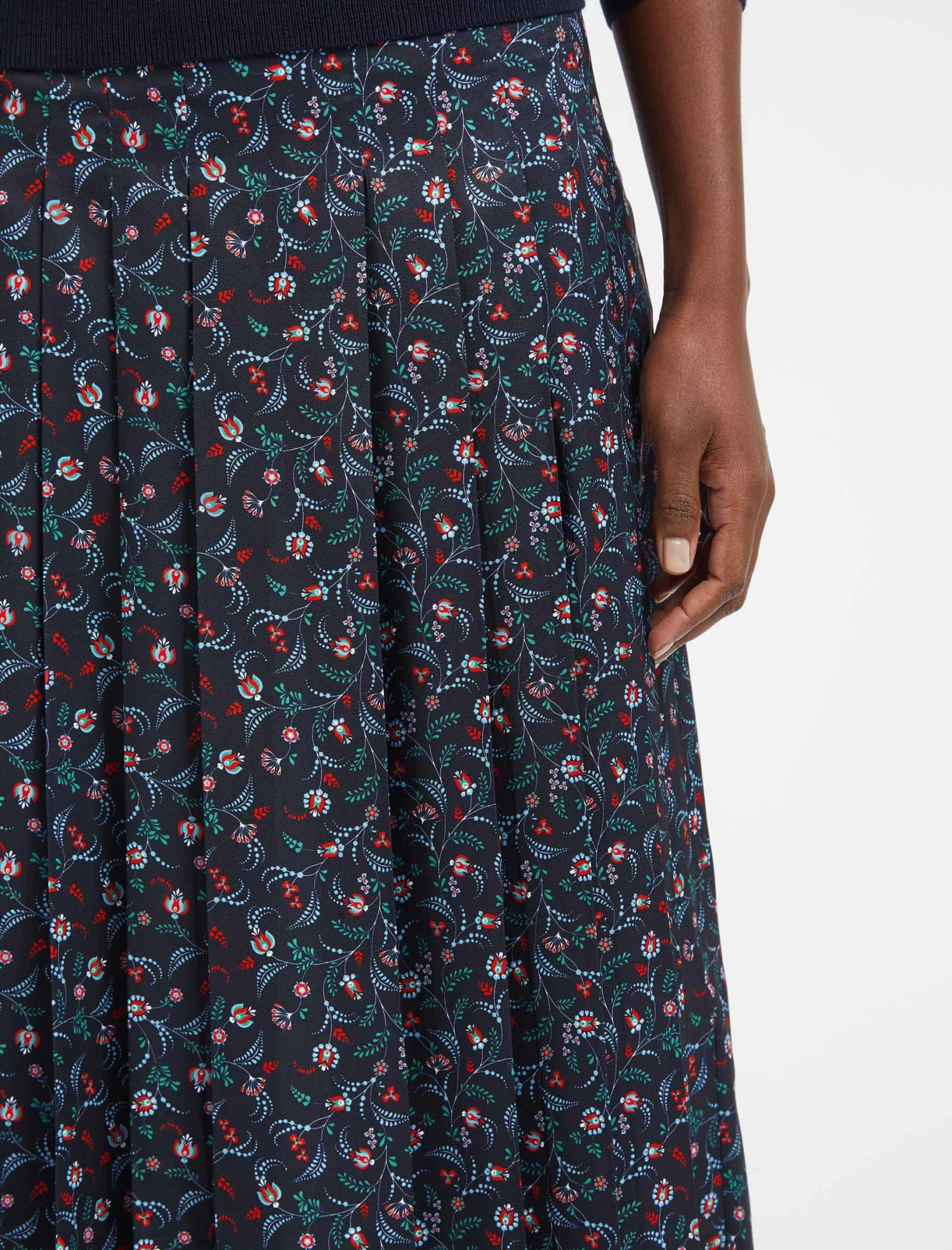Enlivening wardrobes with its pretty navy blue trailing floral print, our romantic Cordelia dress is made from a lightweight, shimmery recycled twill. The gathered shoulders, wide waistband and slim sash accentuate the waist (tied at the front or back), before falling into a loose, softly tiered skirt. A perfect all-occasion dress, toughen it up with an ankle boot and a bold red lip or keep it classic with a slimming heel.