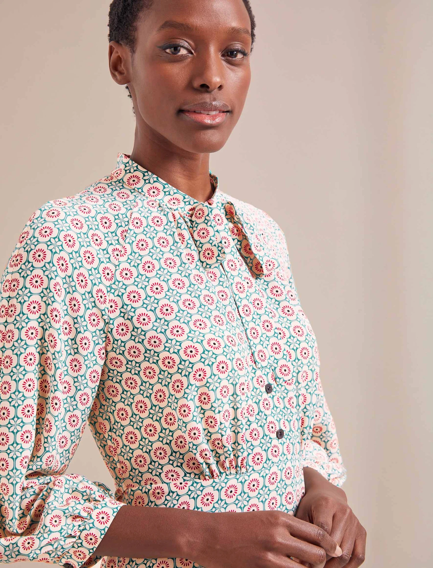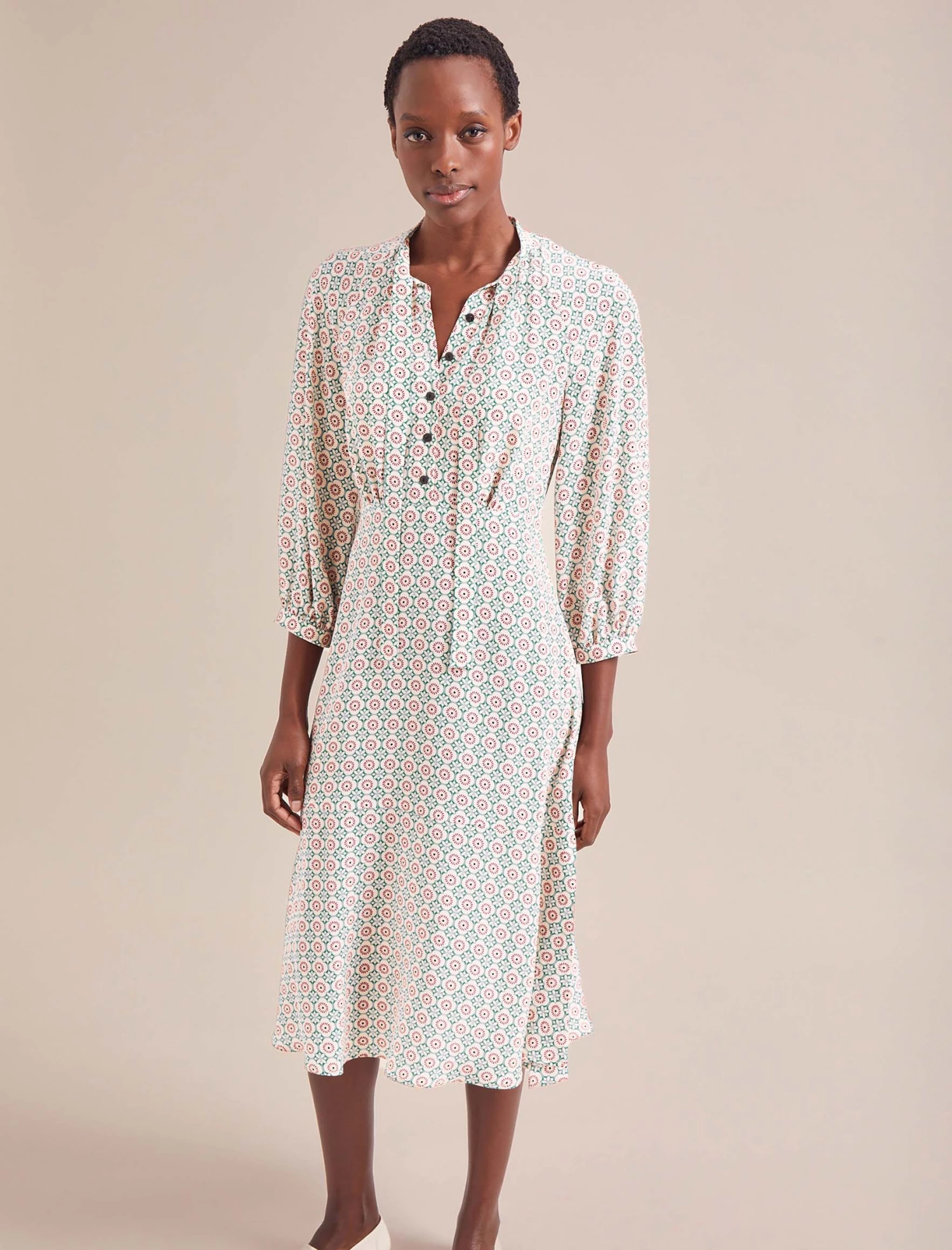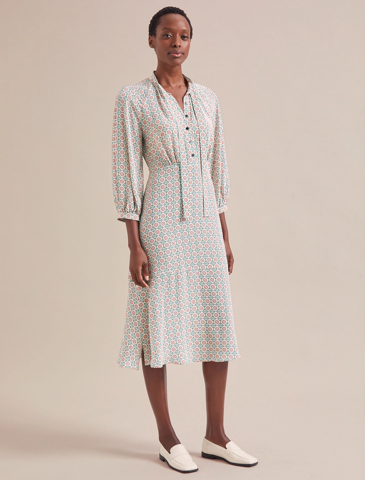Daria Silk Midi Dress – Cream Floral Tile Print