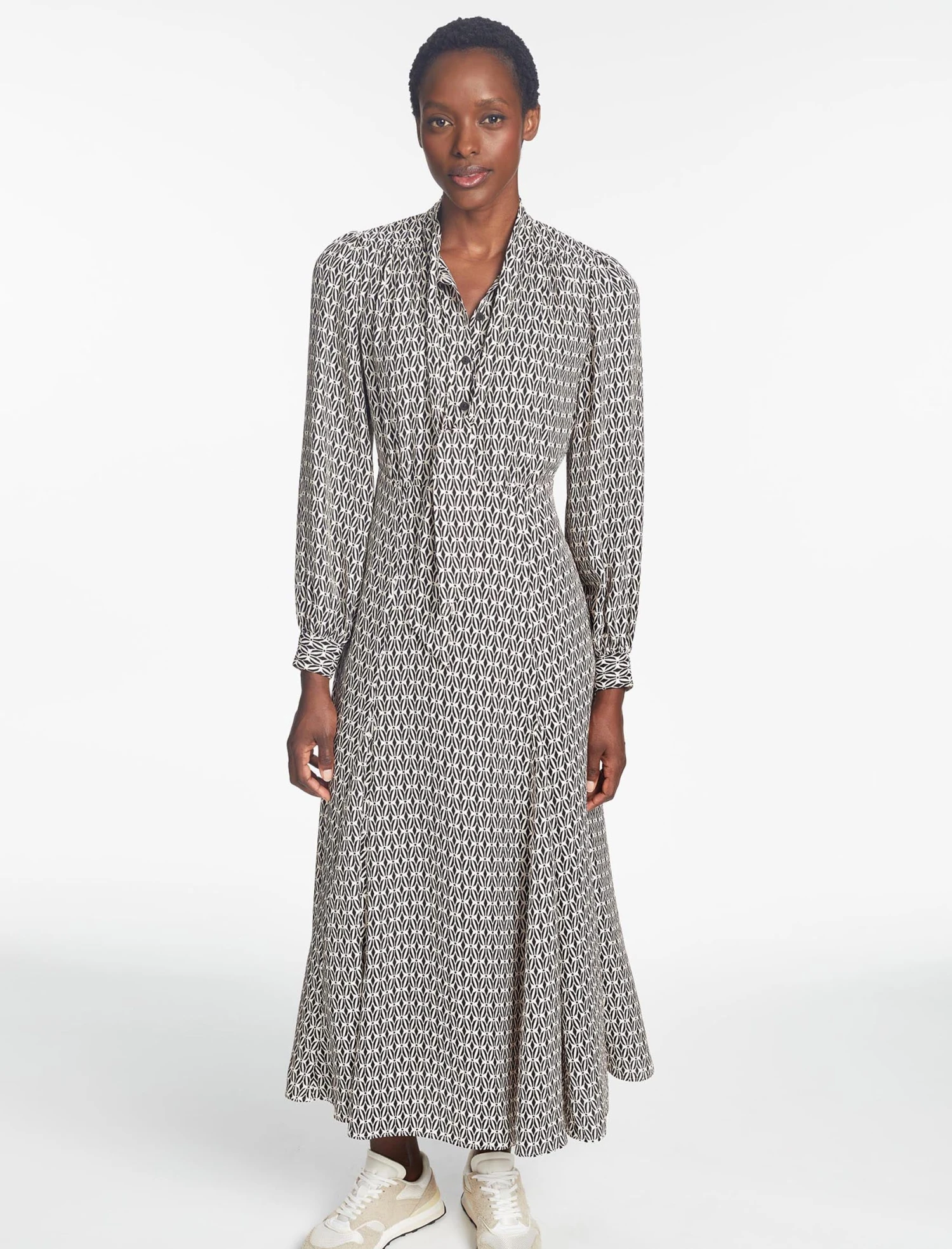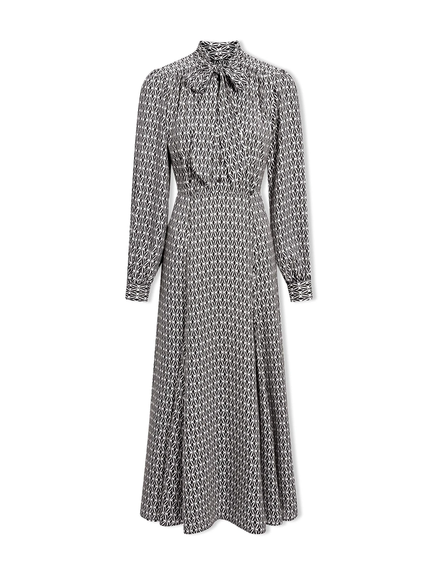 Elspeth Maxi Dress – Ecru Black Trellis Print