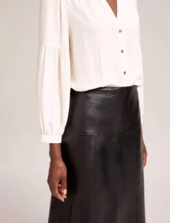- High neck collar with gather detail
