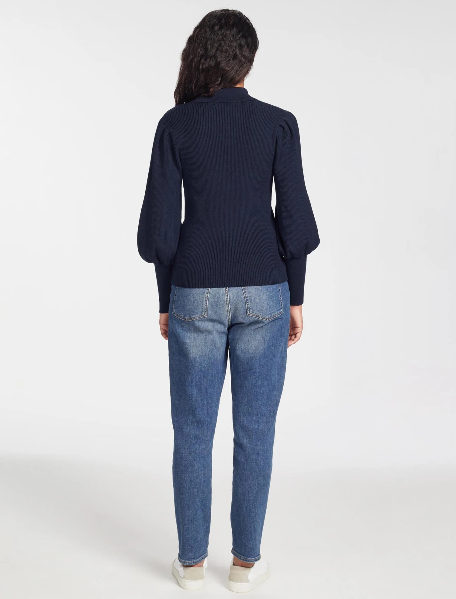 Eva Merino Wool Collared Jumper – Navy