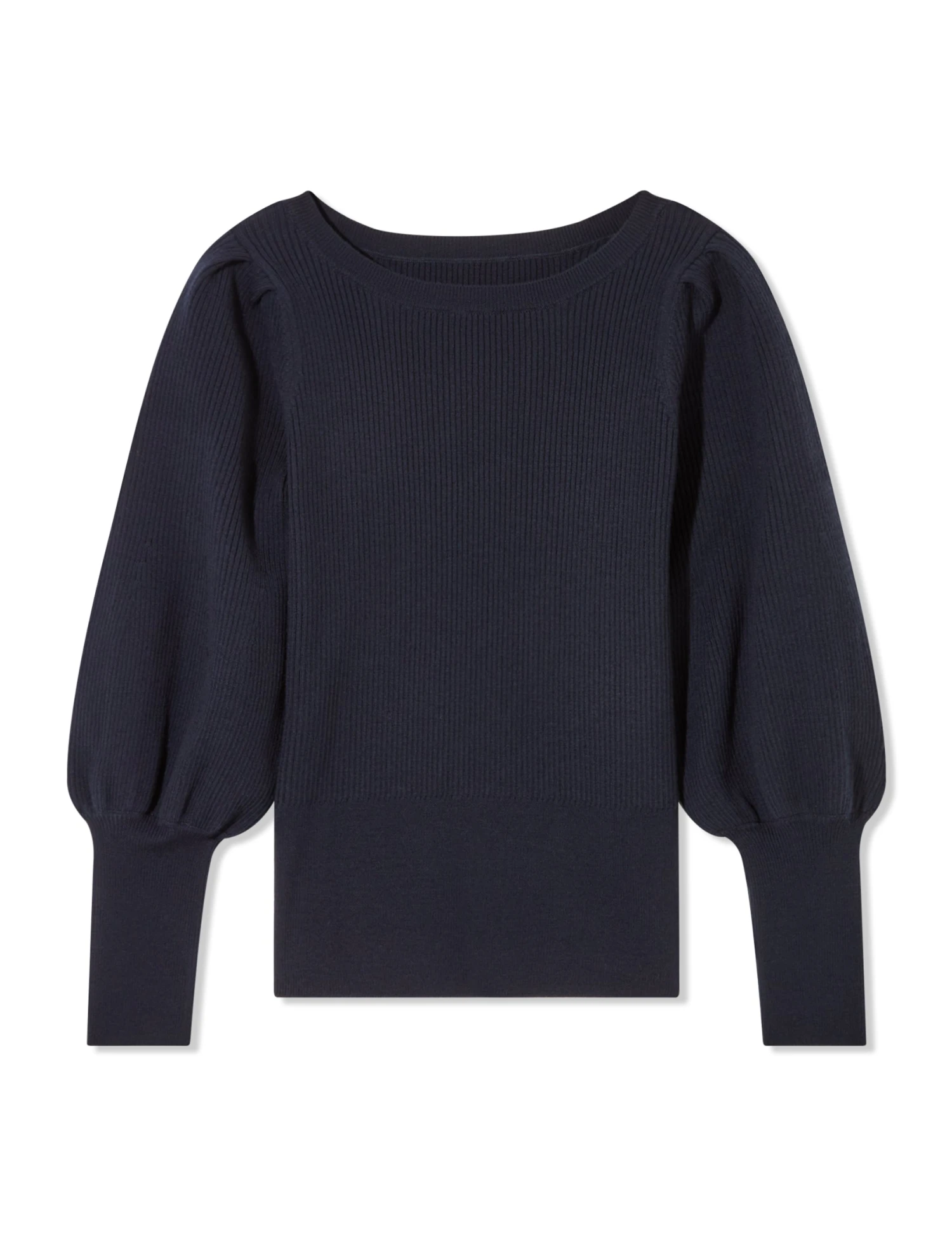 A rework of our bestselling turtleneck Eva top, this new iteration will revitalise your wardrobe staples. Rib-knitted in a super-soft merino-wool blend that’s both machine-washable and pill-proof you’ll feel pulled together even on the busiest of days. The feminine blouson-style sleeves and flattering boat-neck collar ensure it looks work-smart with tailored trousers and elevates wardrobe basics.