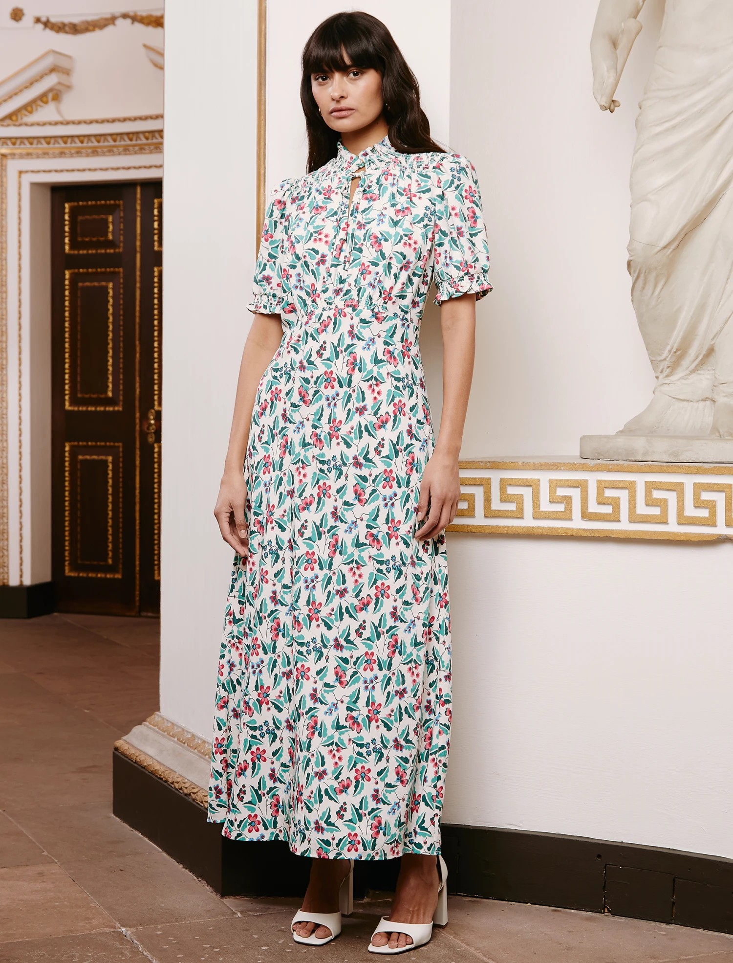 With its figure-flattering bias-cut silhouette, it’s little surprise our Irina dress has been a sell-out hit season after season. Back for Spring/Summer 24 in a fun, flamboyant floral with a subtle leopard jacquard, its winning formula of pretty shirring, bias-cut skirt and tie-neck remain. What’s new is the robust washable fabric that won’t crease making it ideal for travel and perfect for a far-flung party. A standout style, Irina is perfect for Ascot, summer garden parties and weddings and celebrations!