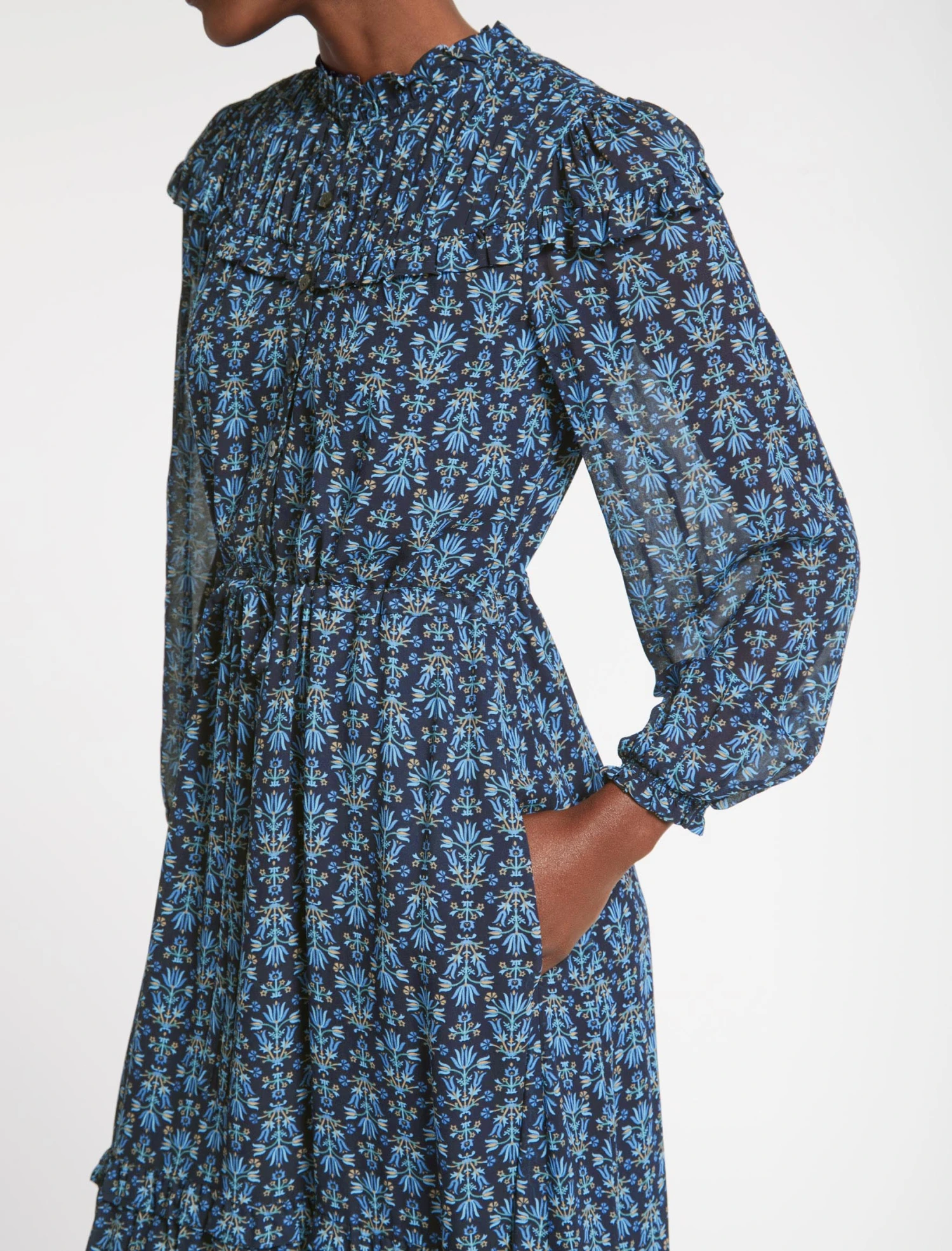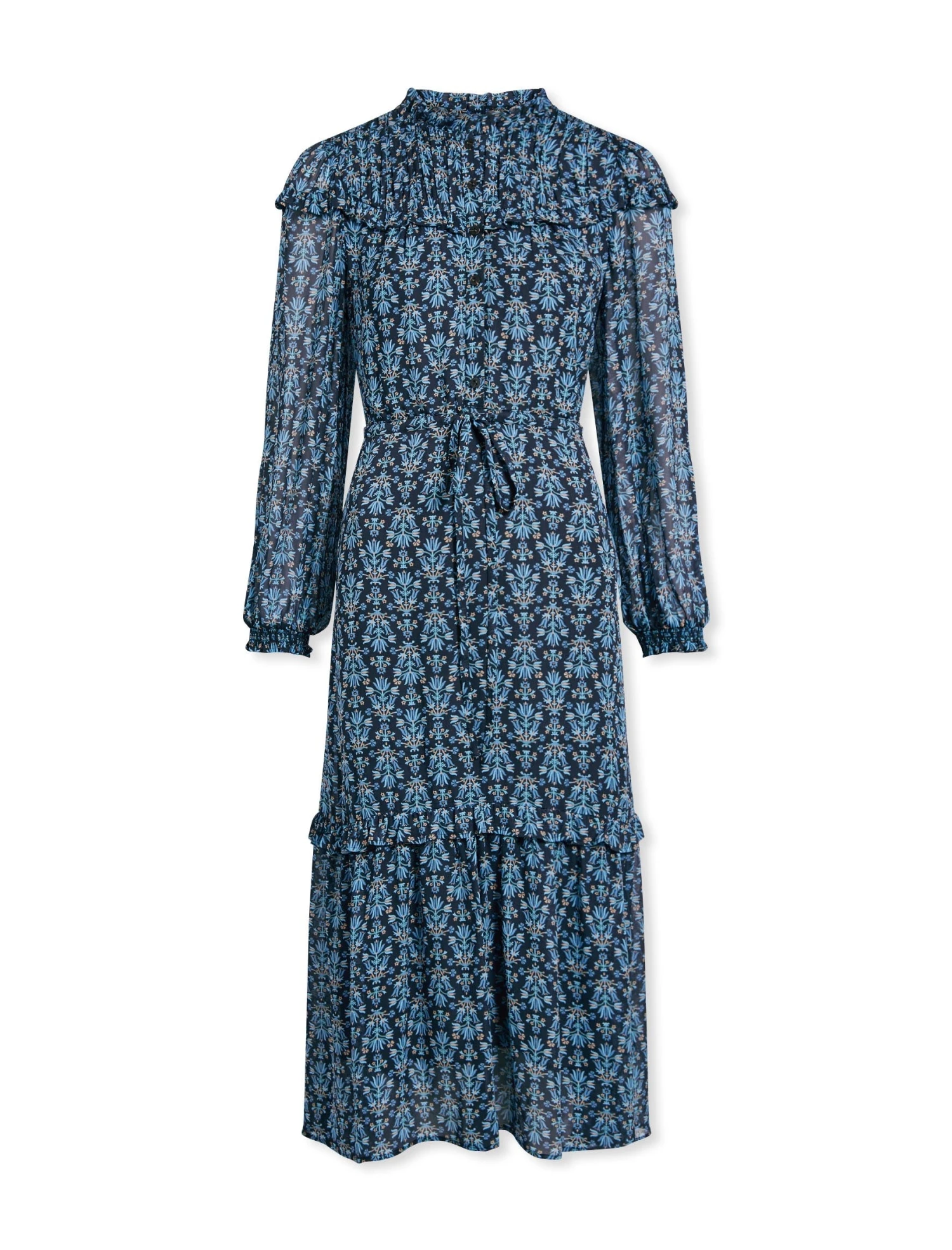 Get your spring feels courtesy of Isla. Designed in a delicate georgette blend, this unashamedly feminine design includes a pretty ruched yolke, drawstring waist and frilled detailing. While the folk floral print nods to warmer climes, the long, shirred sleeves and dipped hem mean it works just as well on chilly days.