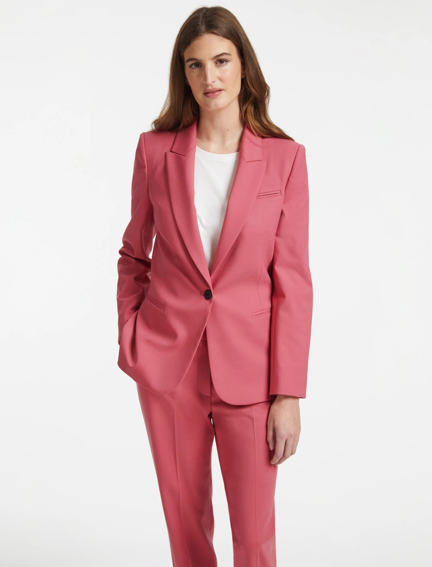 A signature Cefinn piece, our bestselling Jamie blazer is perfectly cut in wool blend suiting with stretch, so it looks as good at the end of the day as the start. Our new Rose colourway gives it a modern twist which when worn with the Clement tailored trouser gives you standout, sartorial style. Go for glamour with a silk cami and heel or channel a fresh approach to workwear with a crisp white tee and box-fresh trainer.