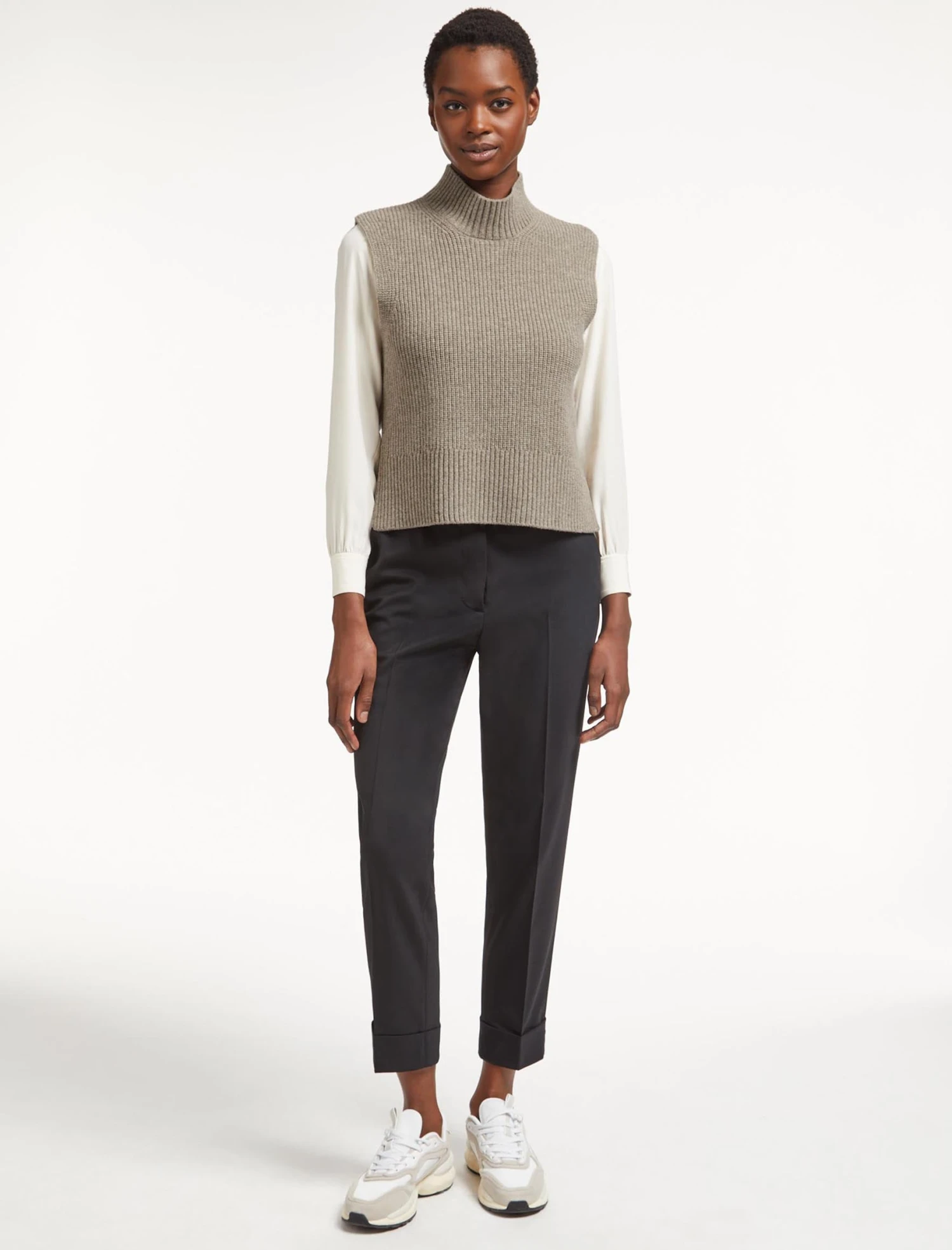 Pieces that neatly combine comfort, versatility and style are essential this winter. Our sleeveless Janie jumper is just the ticket. A brilliant layering piece, the fully fashioned armholes ensure it sits snugly over any sleeve – whether a tailored shirt or blouson blouse – while the dropped hem and side slits mean it effortlessly slips over voluminous dresses or skirts, as well as a tee and jean or shirt and tailored trouser. Hello, Little Miss Versatile!