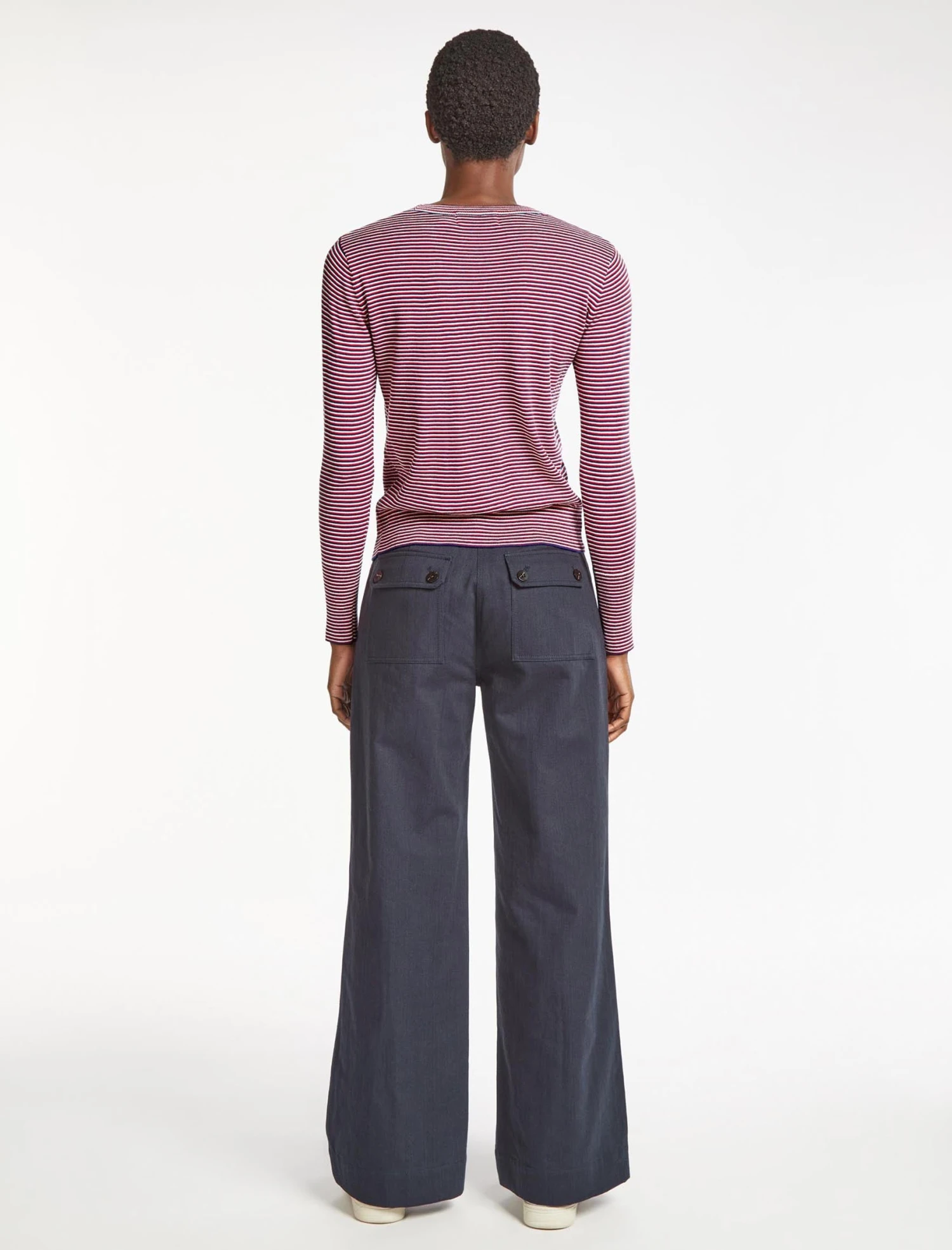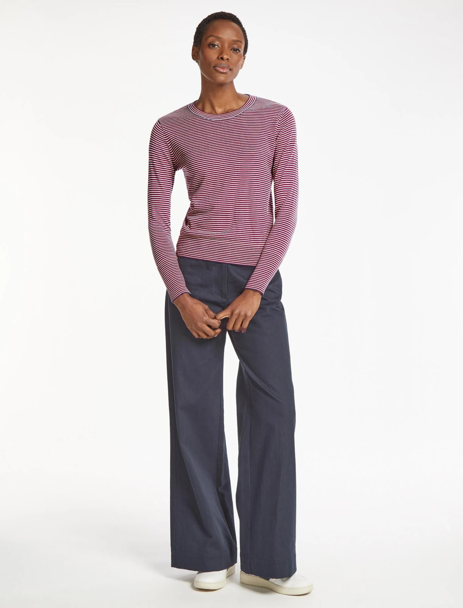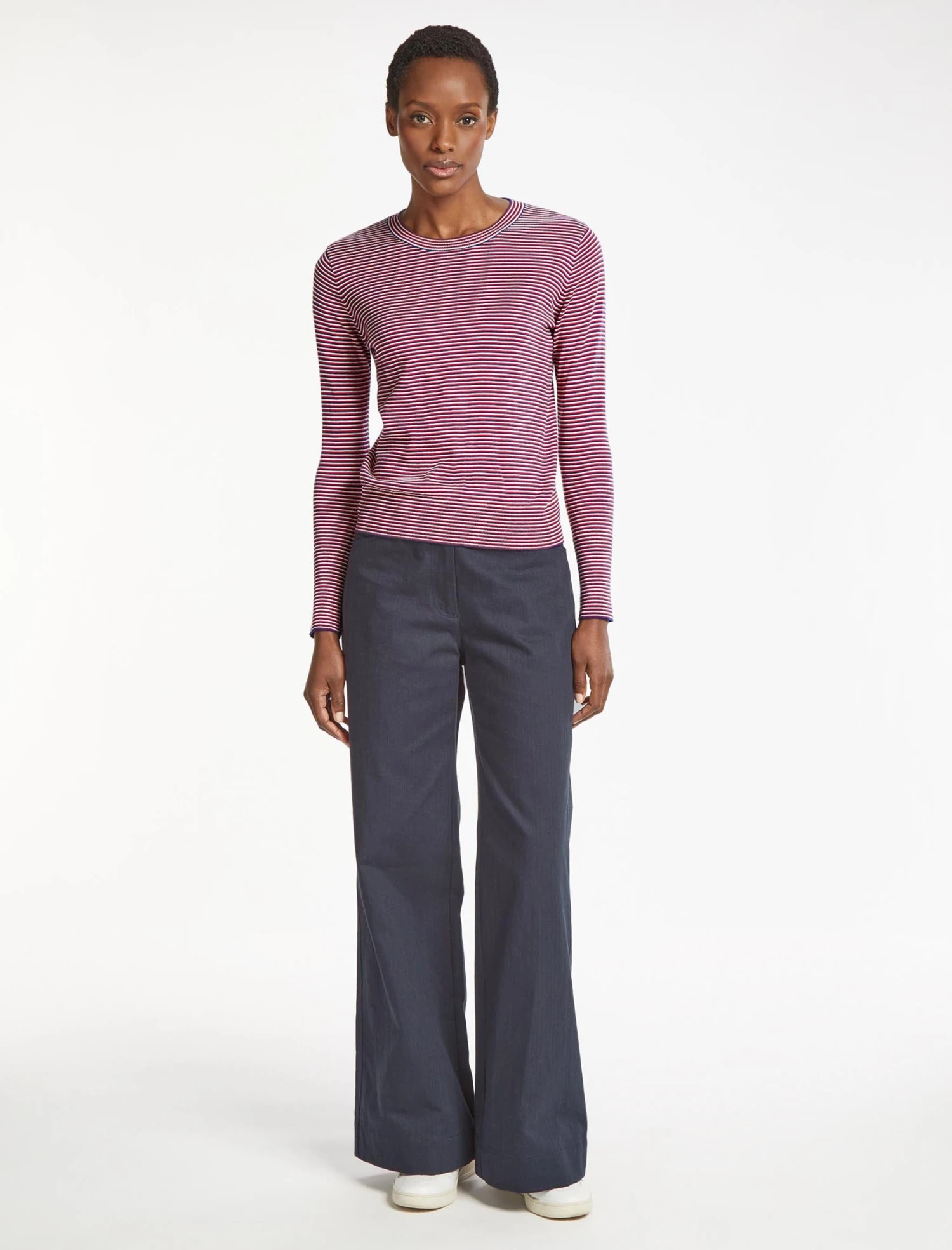 Jodi Cotton Jumper – Navy Crimson Cream Stripe