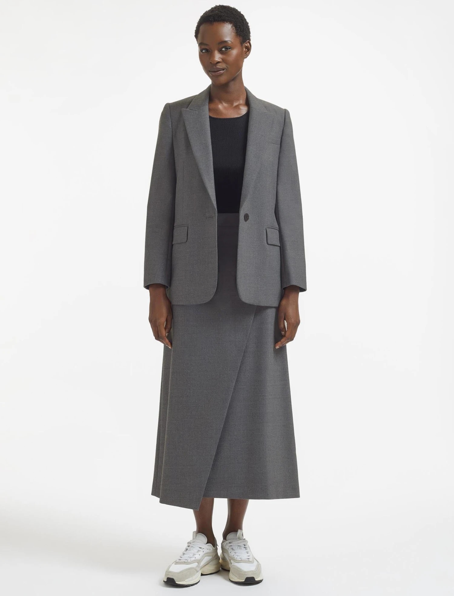 Back by popular demand, the super-cool Layla maxi wrap skirt ticks both the work and play boxes. Designed in our wool suiting fabric with a hint of stretch, the wrap is stitched down so it won’t gape, and it has an elasticated back waist for easy wearability. Style with a crisp white shirt and heeled boot for an on-trend daytime look, dress up with a silk blouse or soften with a pointelle knit.