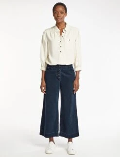 Our utility-style cropped Leo trouser is the ideal summer/autumn wardrobe staple. Designed in our indigo fluid twill, with side pockets and a shirred back waist for added wearability, it will see you through staycations, casual summer soirees and city breaks in laid-back style.