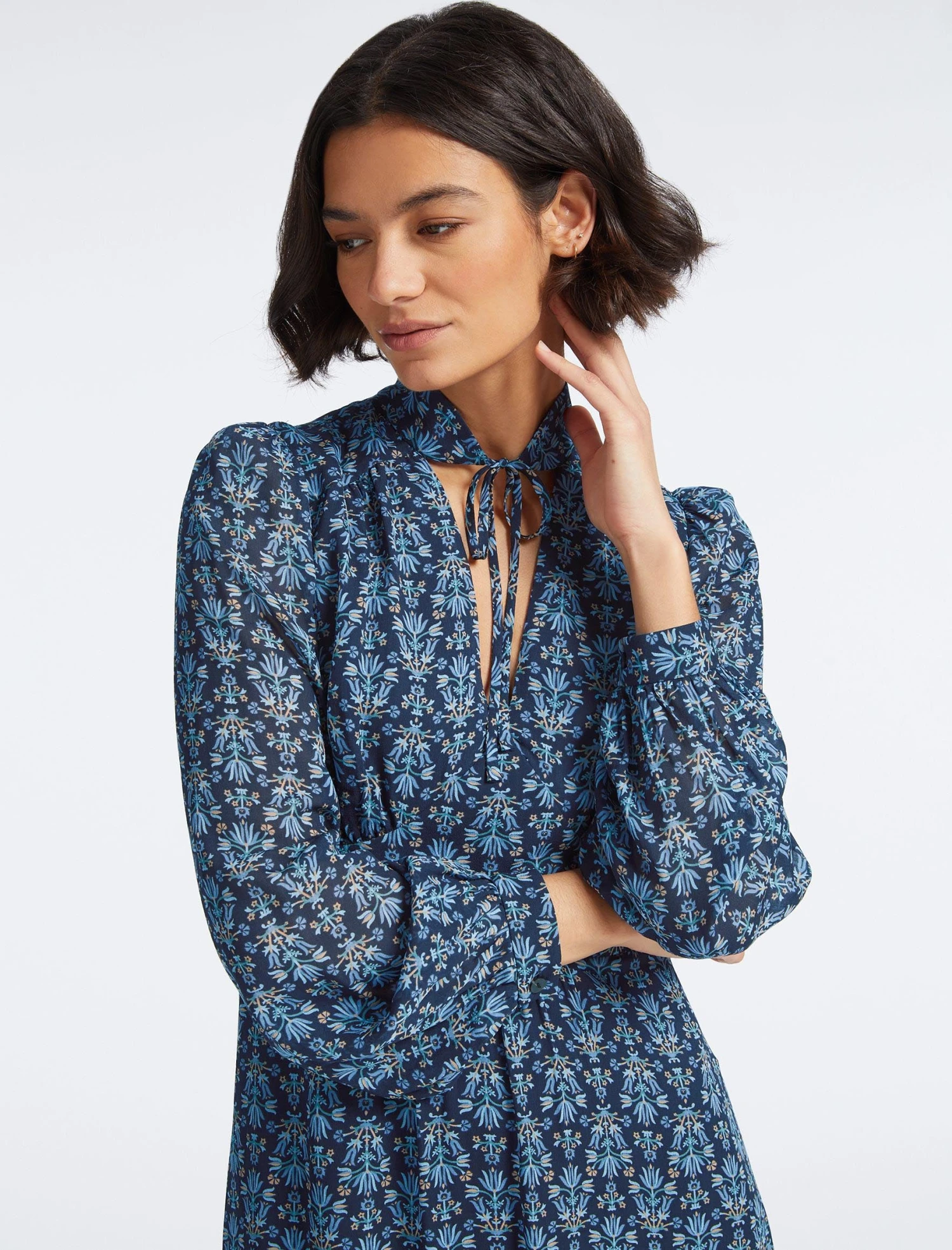 Based on our sell-out Jacquetta silhouette, Luella has trans-seasonal style down to a fine art. Designed in a delicate georgette blend with our folk floral print, the stand collar and empire-line silhouette that falls to a straight skirt elevate it to event-ready status. The long sleeves and maxi cut ensure it also has wintry days covered.