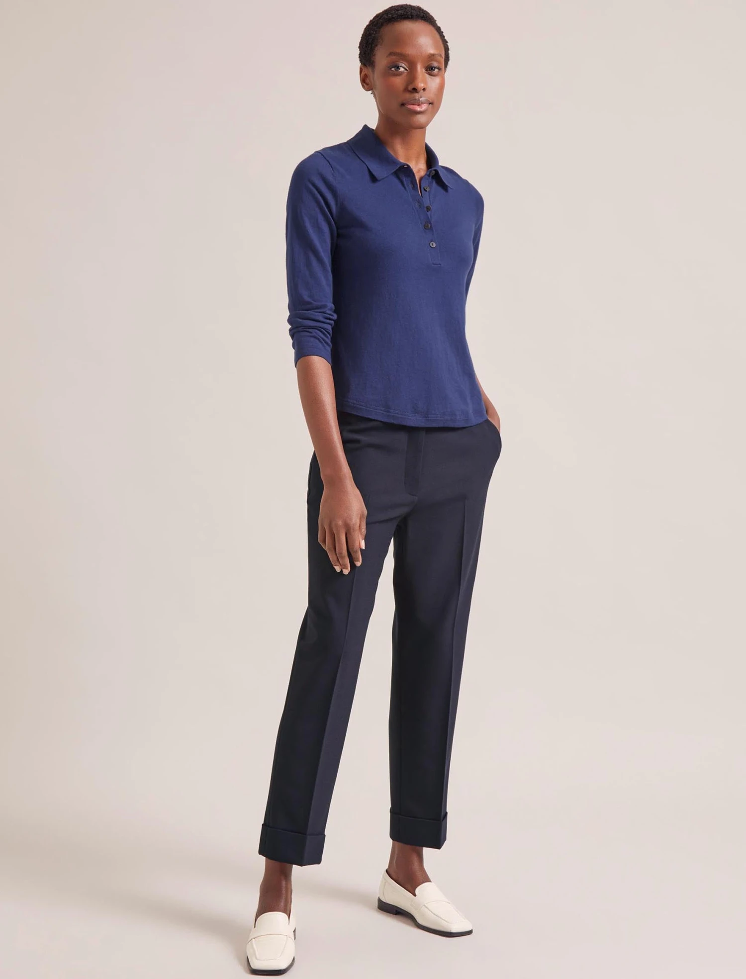 A smarter take on a classic T-shirt, Morgan is styled on a classic polo shirt with its short placket and collar. Cut from a fine silk-and-cotton blend, it’s also lightweight and endlessly wearable. With gentle shaping through the waist and a dipped hem for ease of styling, we think this could be your perfect spring-to-cool-summer top.