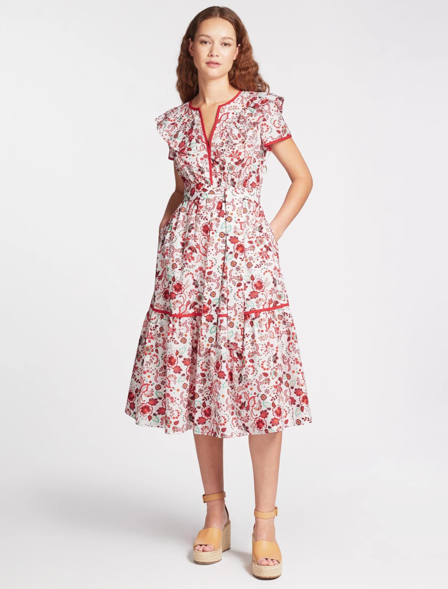 When it comes to easy, everyday dresses that can navigate the beach, sight-seeing and long, lazy lunches, Nessa is your answer. Made from organic-cotton poplin, it comes with a detachable belt that can be tied around the elasticated waistband or swapped and styled with your own belt. The pretty piping detail, ruched bib, side pockets and tiered skirt keep it light and airy.