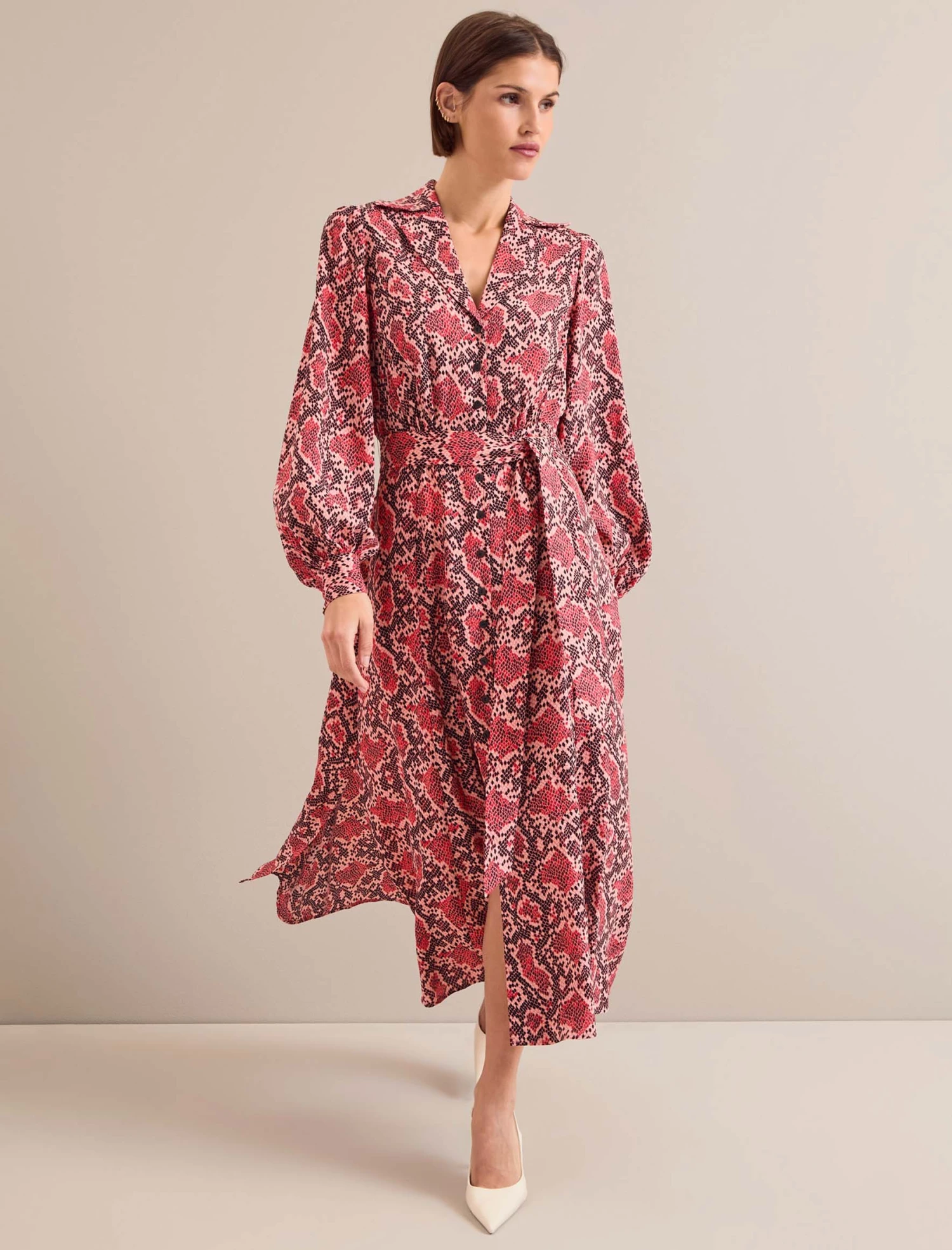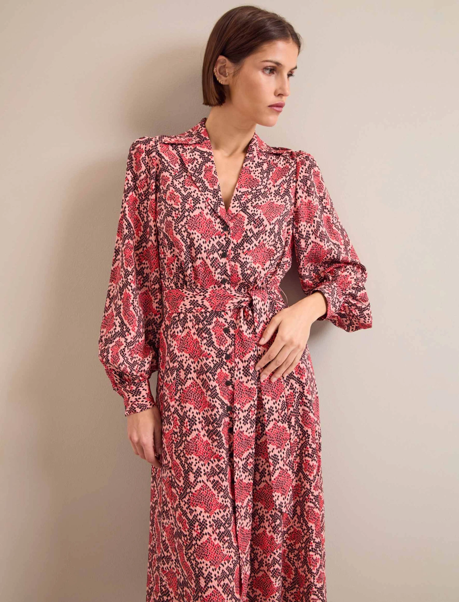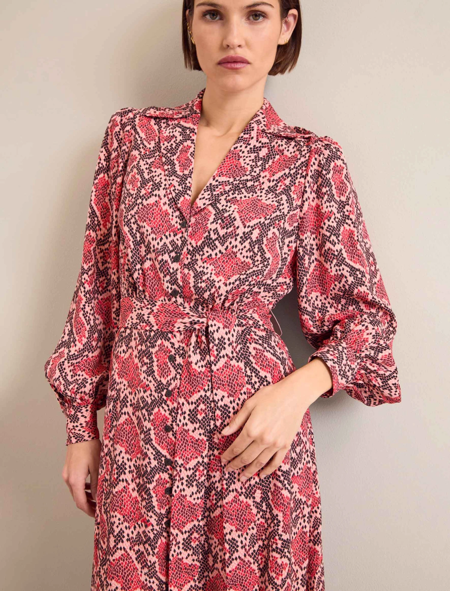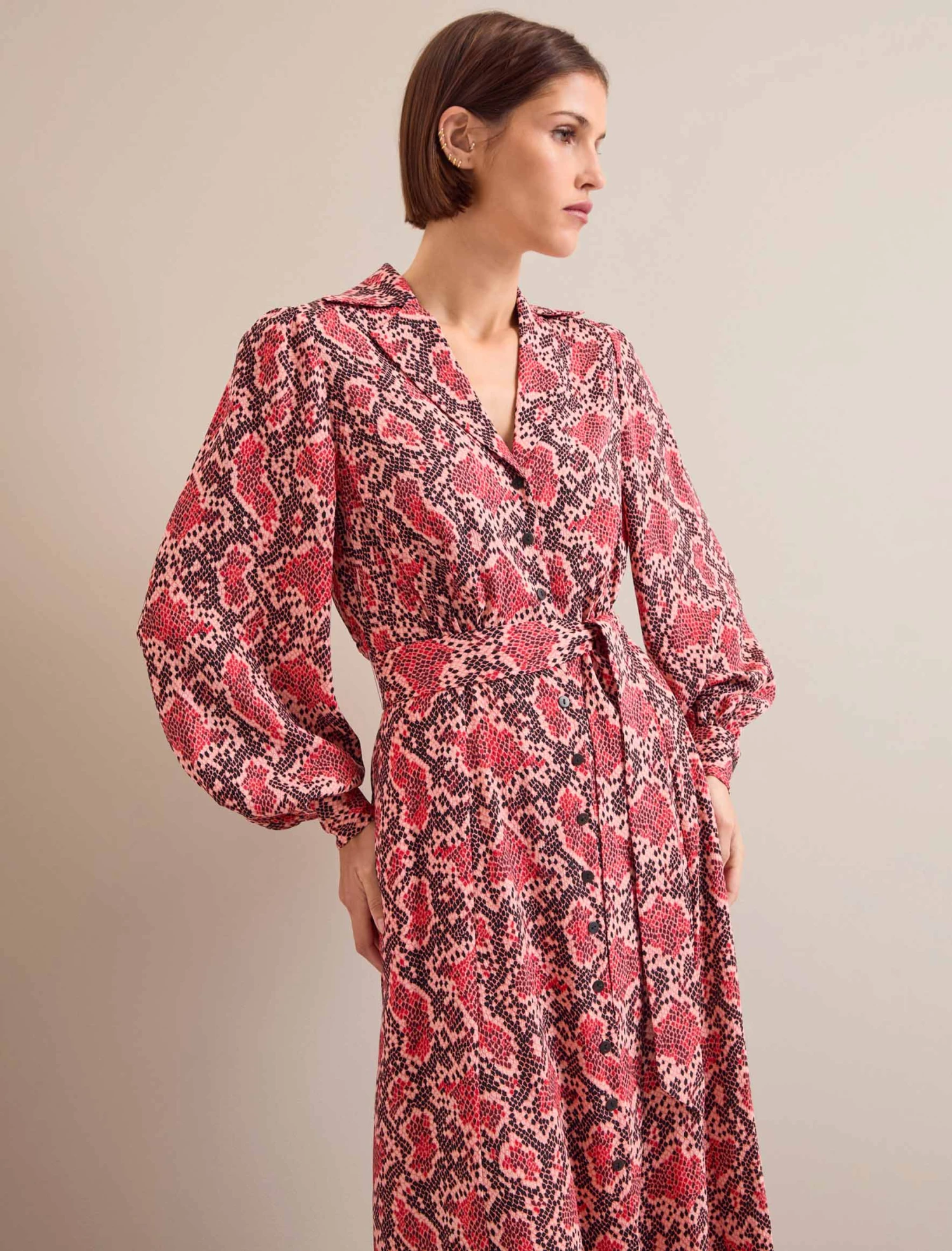 Odette is an effortlessly elegant shirt dress elevated to new levels with beautiful detailing. Cut in a hammered crepe, the exaggerated notch lapel, blouson sleeve, deep cuff and side slits on the skirt add fashion edge and an understated sexiness. This is the dress to take you seamlessly from work meetings to evening drinks and dinner in confident style.