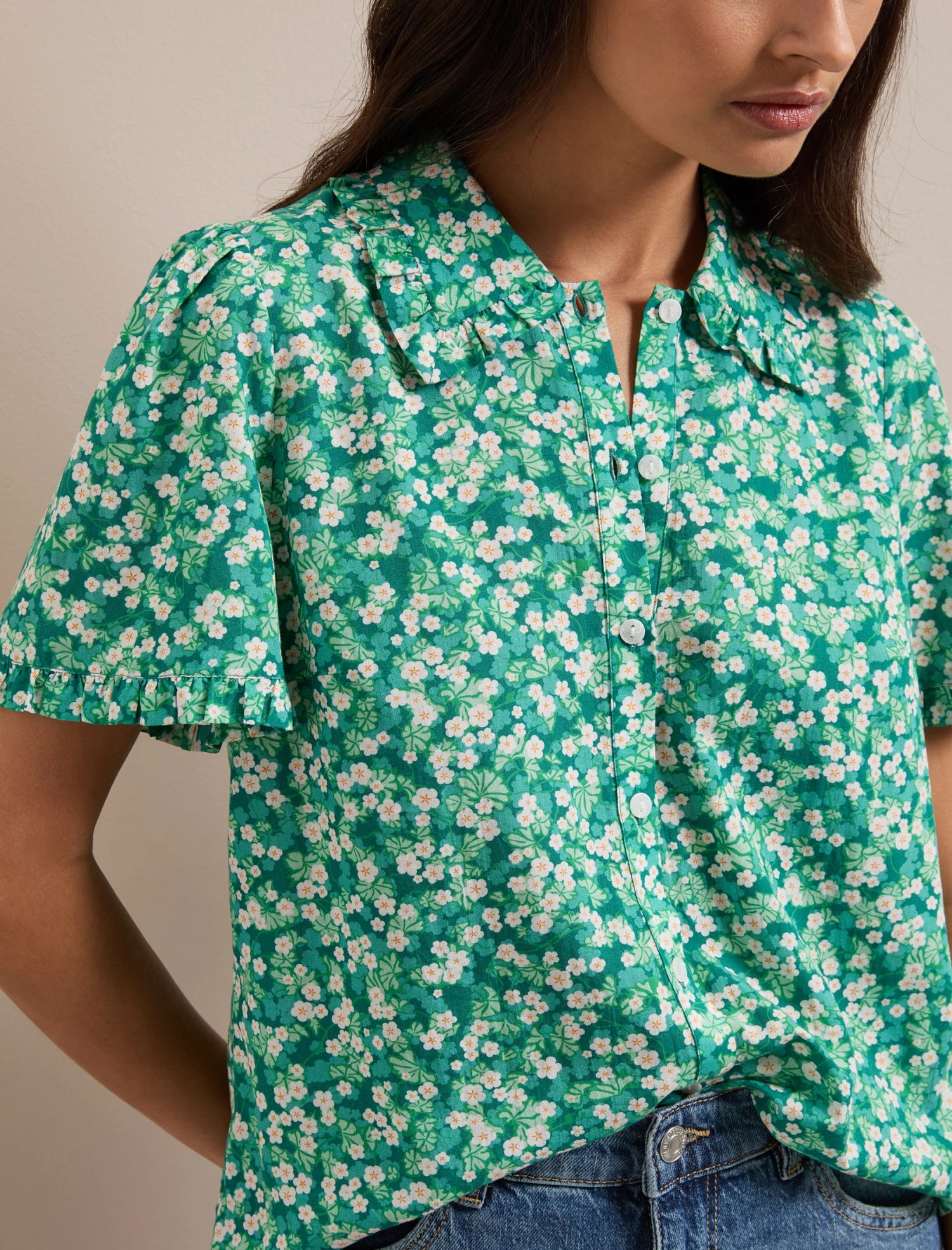 Designed in a soft and sustainable cotton viscose voile, Pippi is the perfect way to elevate summer staples. With pretty frills on the short sleeve and collar, white summarys and a thought-through length that looks good whether tucked or untucked, it looks great styled with denim or tailored trousers.