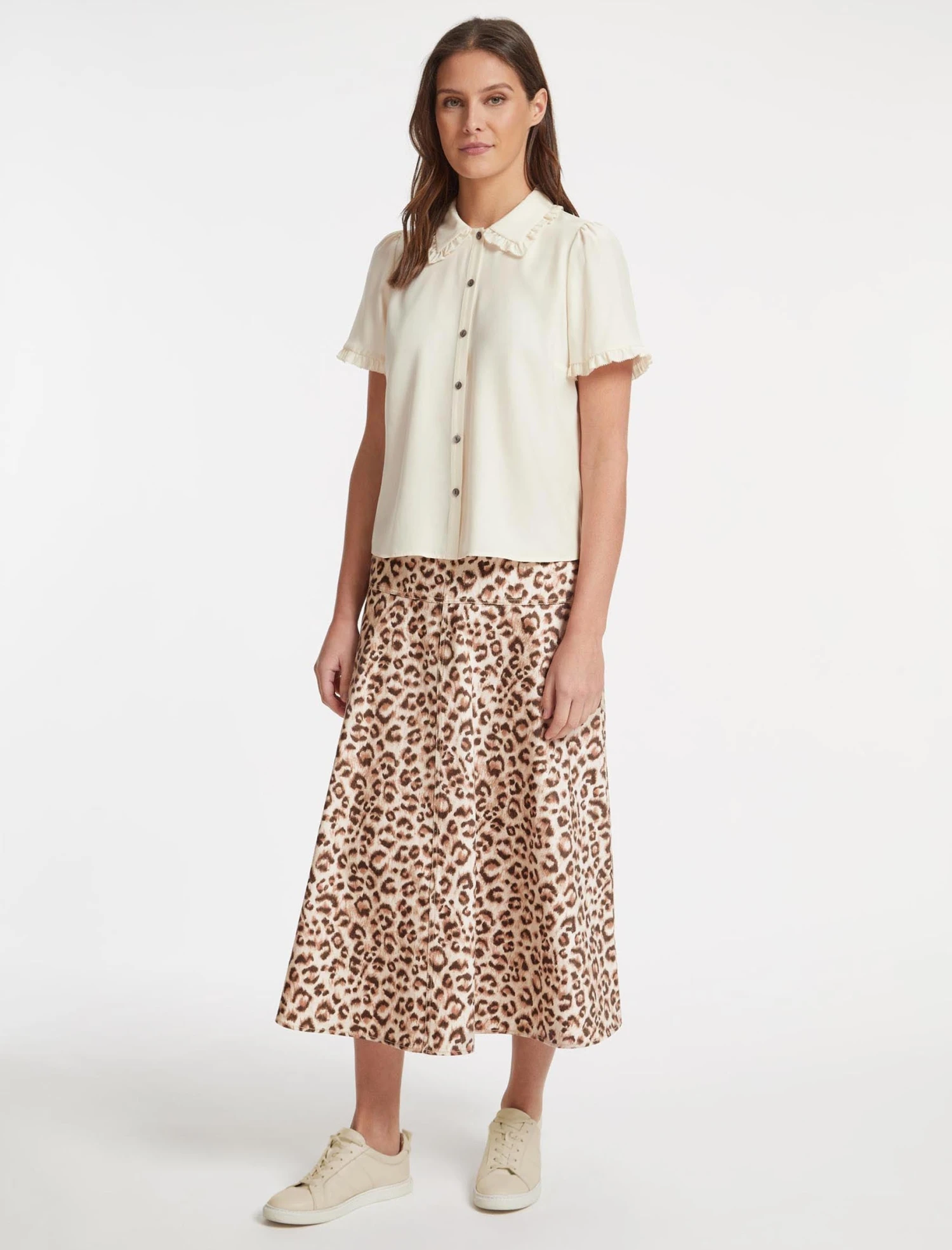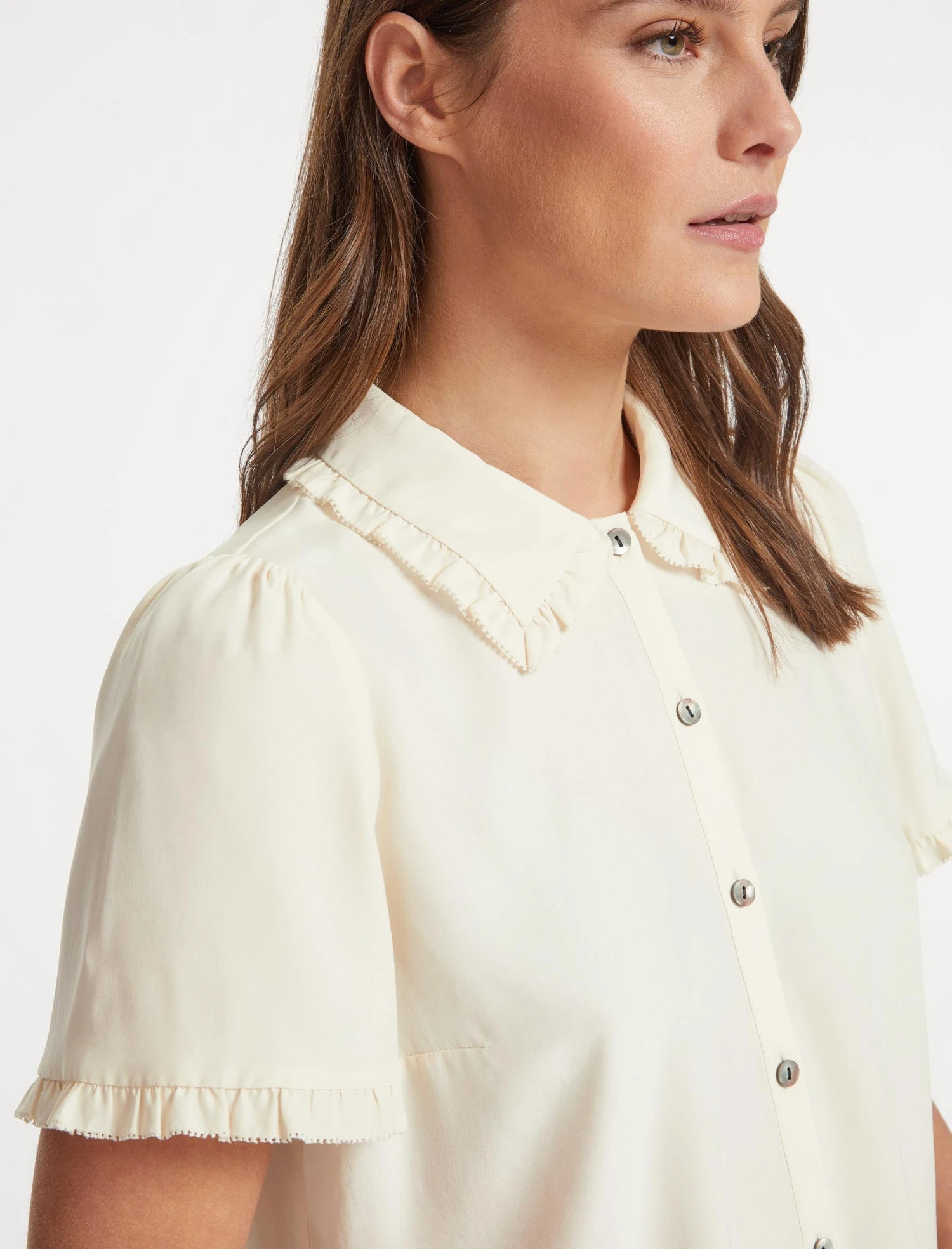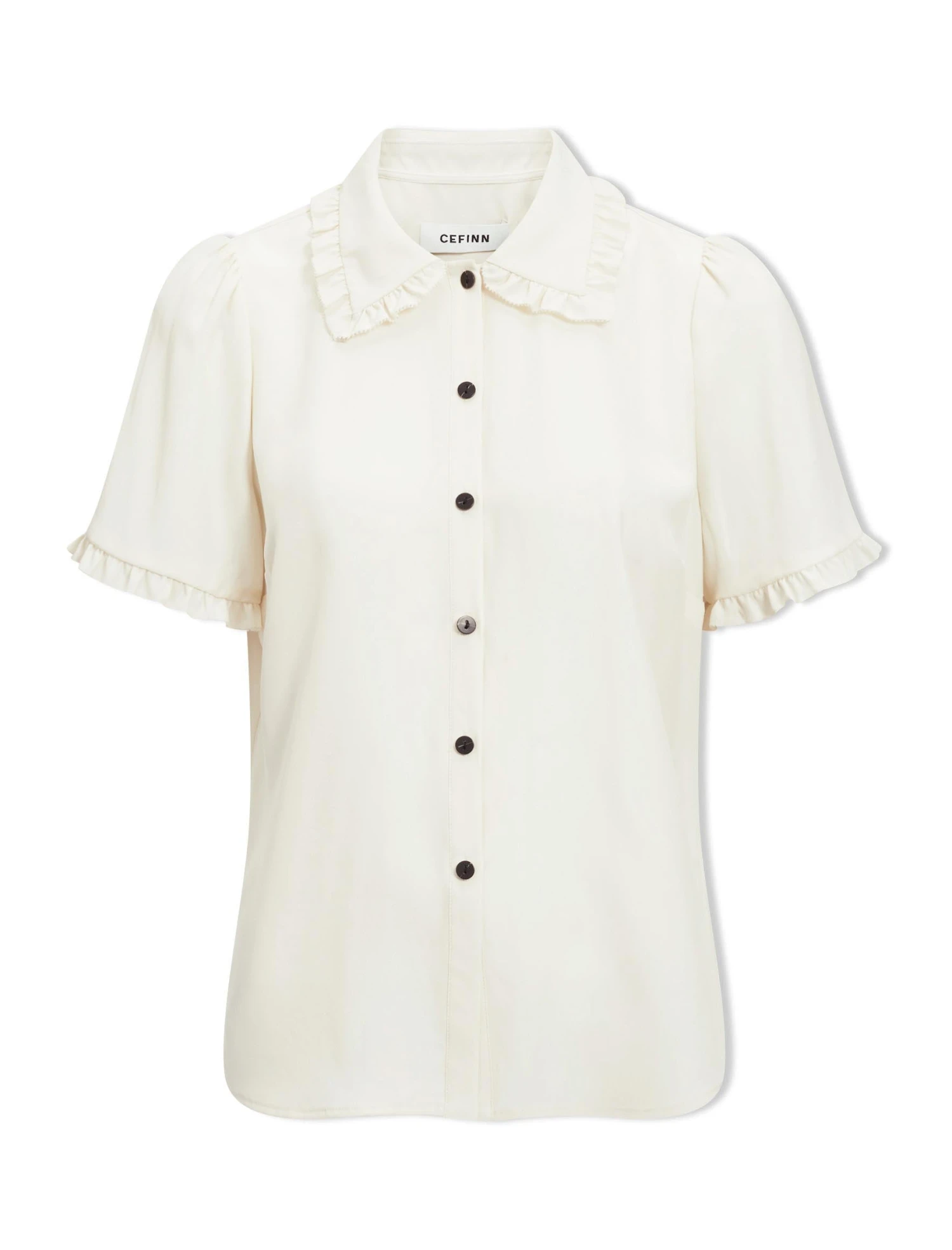 Designed in our heavier-weight satin-backed silk, our feminine Pippi top is the perfect way to elevate summer staples. With pretty frills on the short sleeves and collar, try layering it under a lightweight tank top or jumper for prairie-meets-seventies chic.