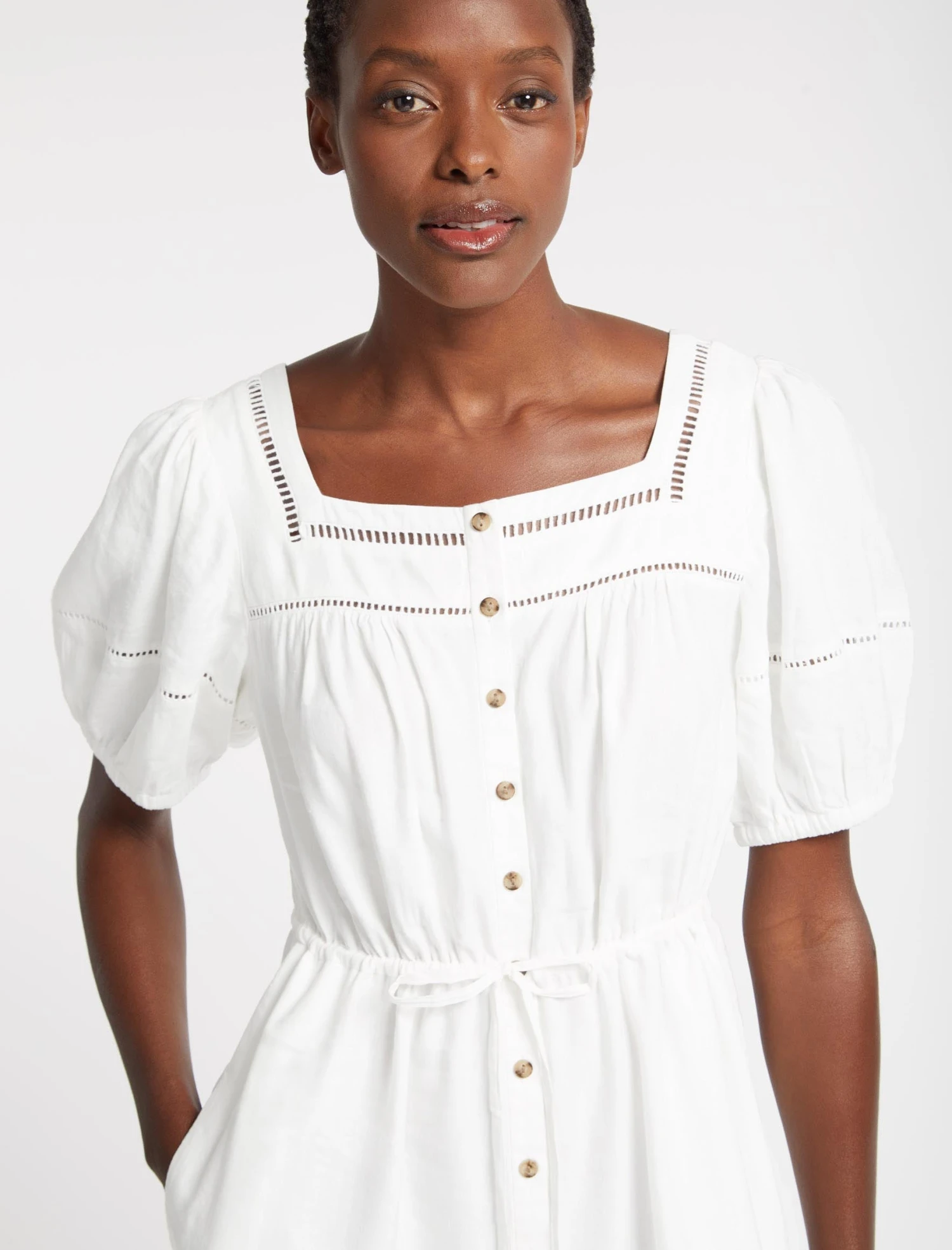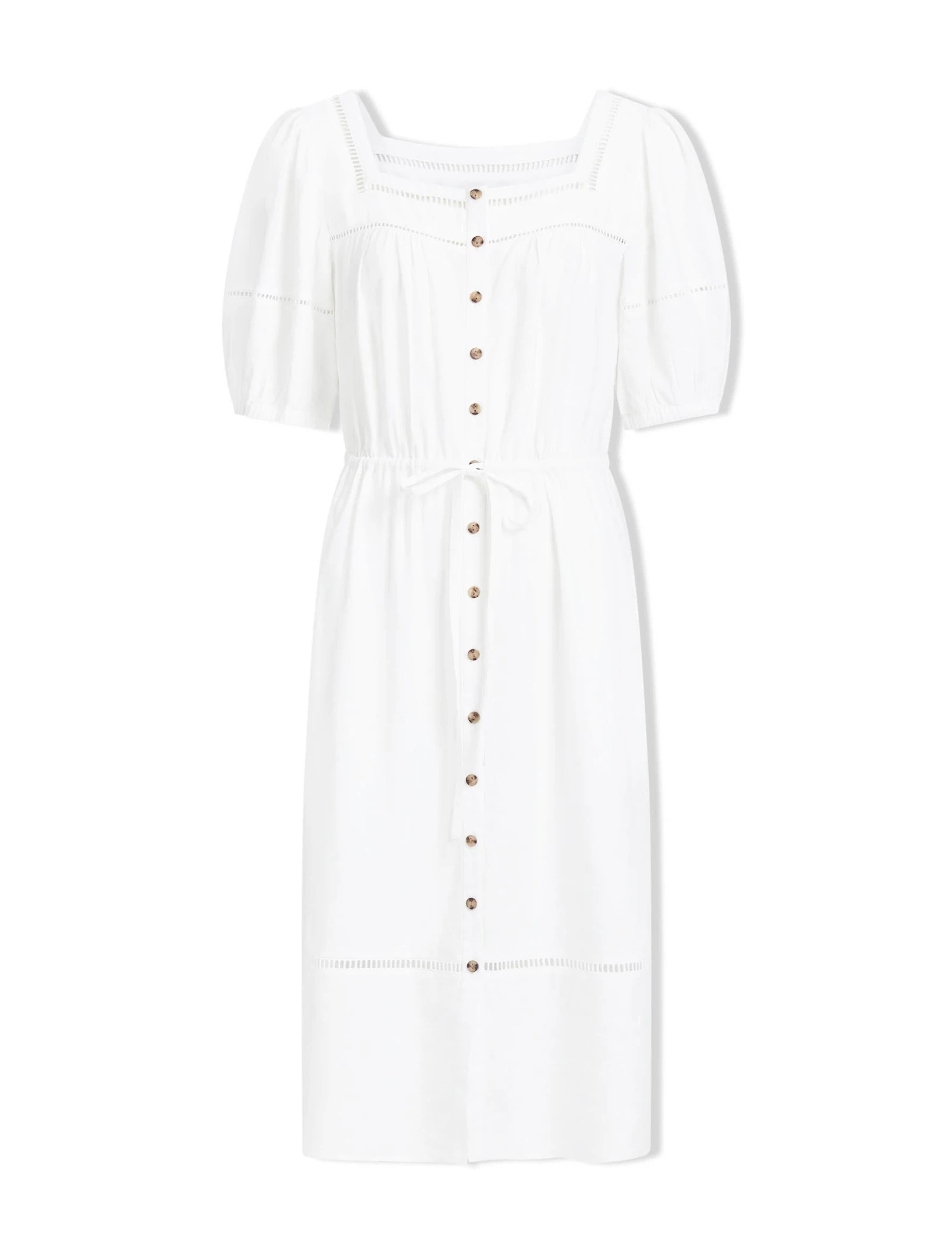 Poppy Linen Blend Midi Dress – White