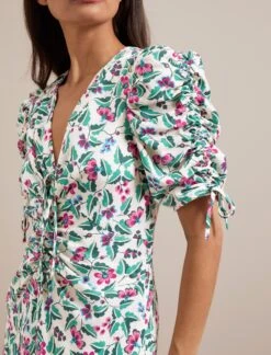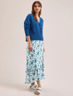 Viola Cotton Blend Bias Cut Maxi Dress – Green White Palm Floral