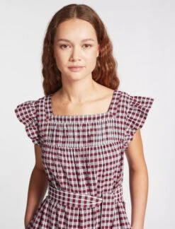 Maisie Organic Cotton Seersucker Midi Dress – Red White Check