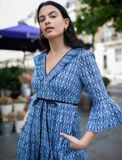 Cordelia Organic Cotton Maxi Dress – Light Blue Geo Star Print
