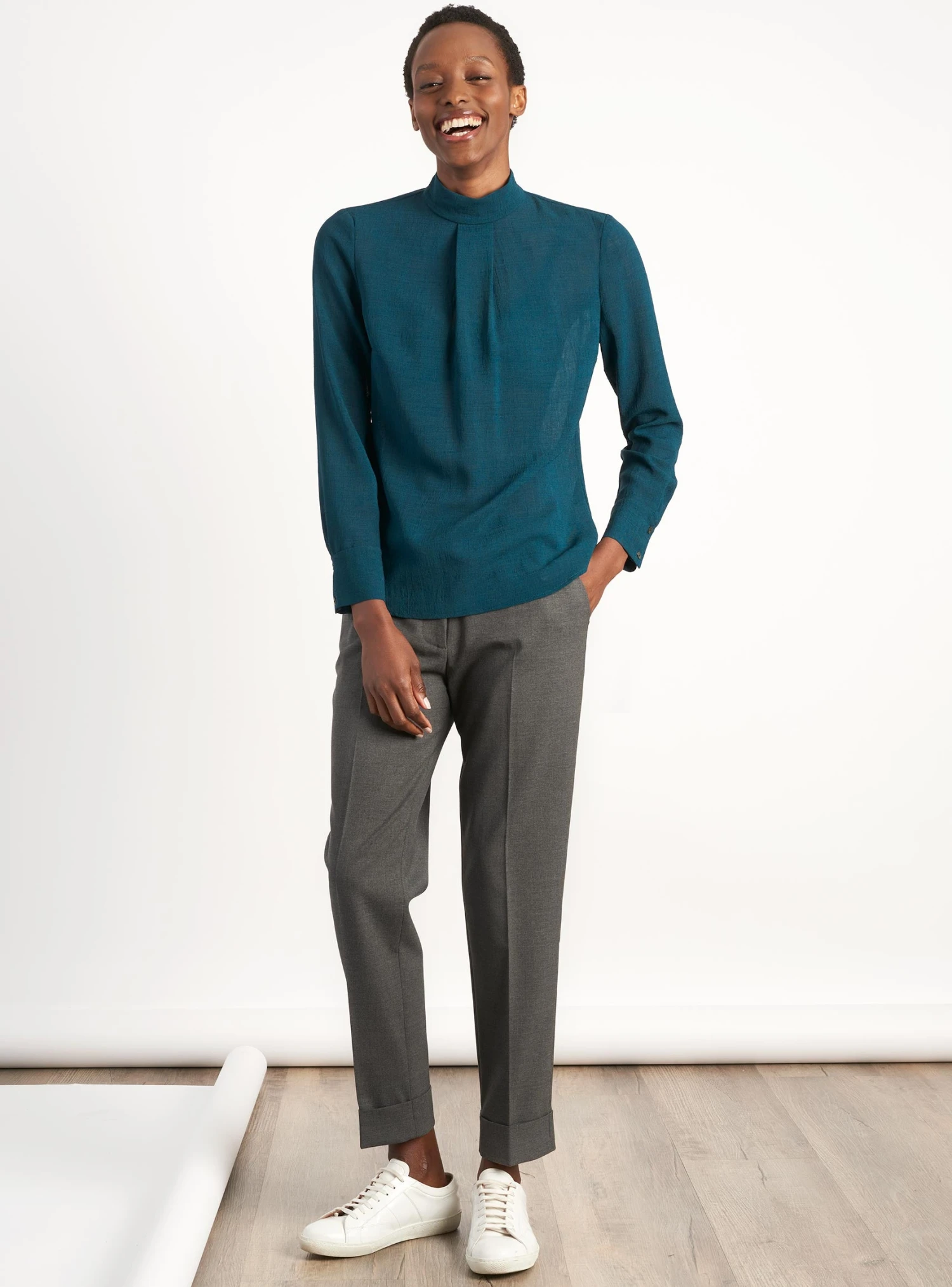 Riley Funnel Neck Blouse – Petrol Blue