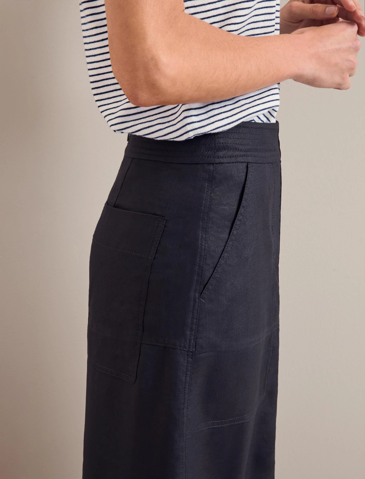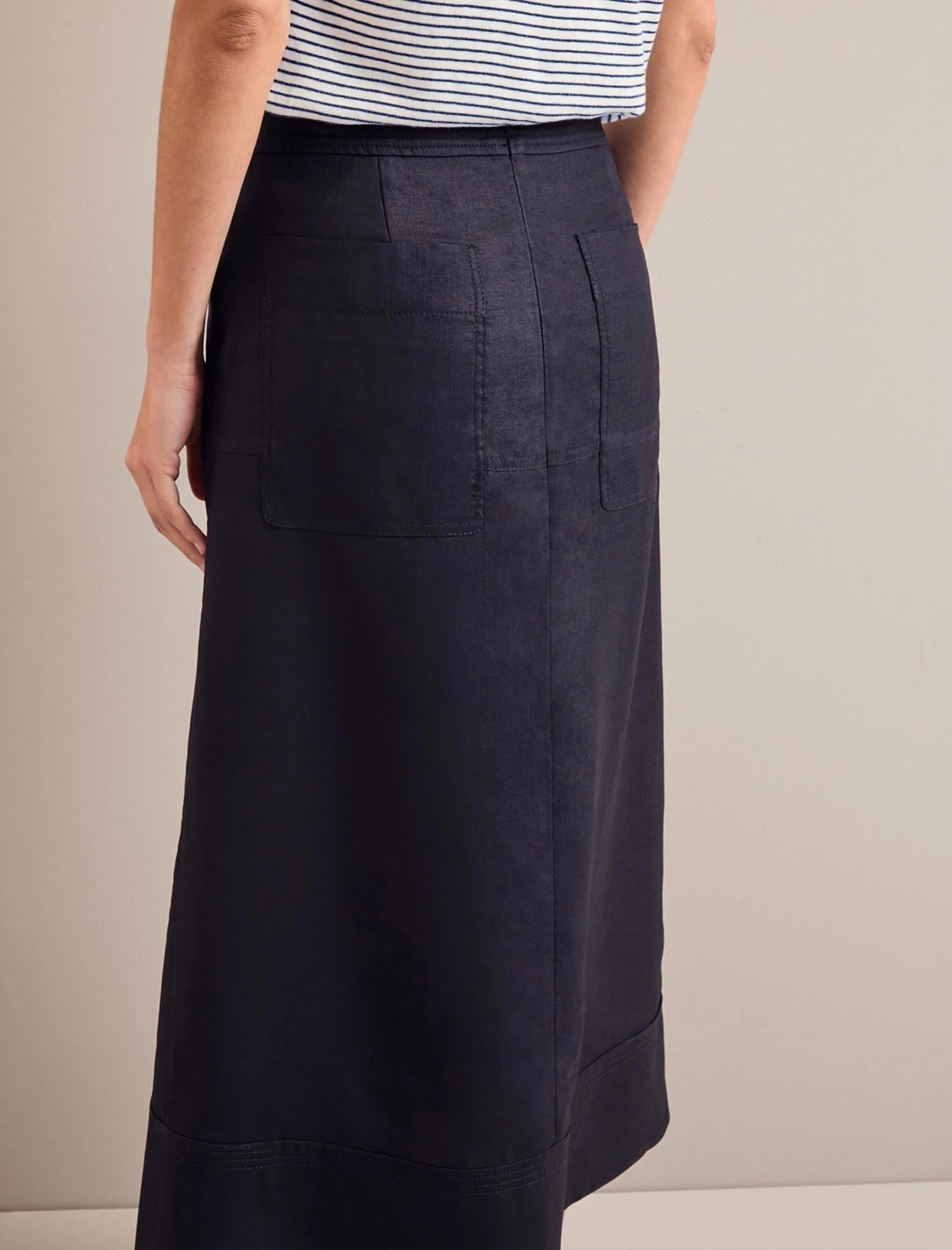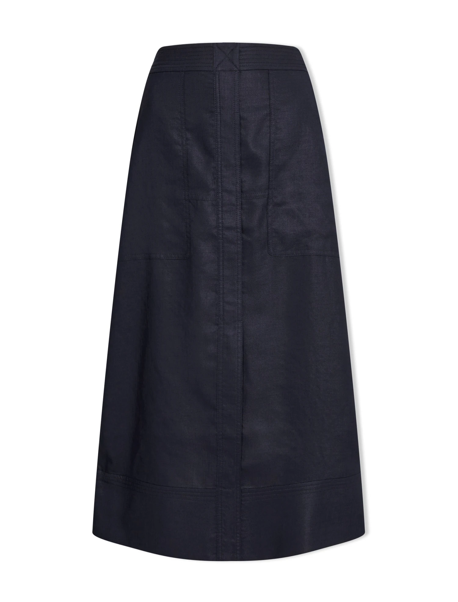 Safia Techni Linen Midi Skirt – Navy