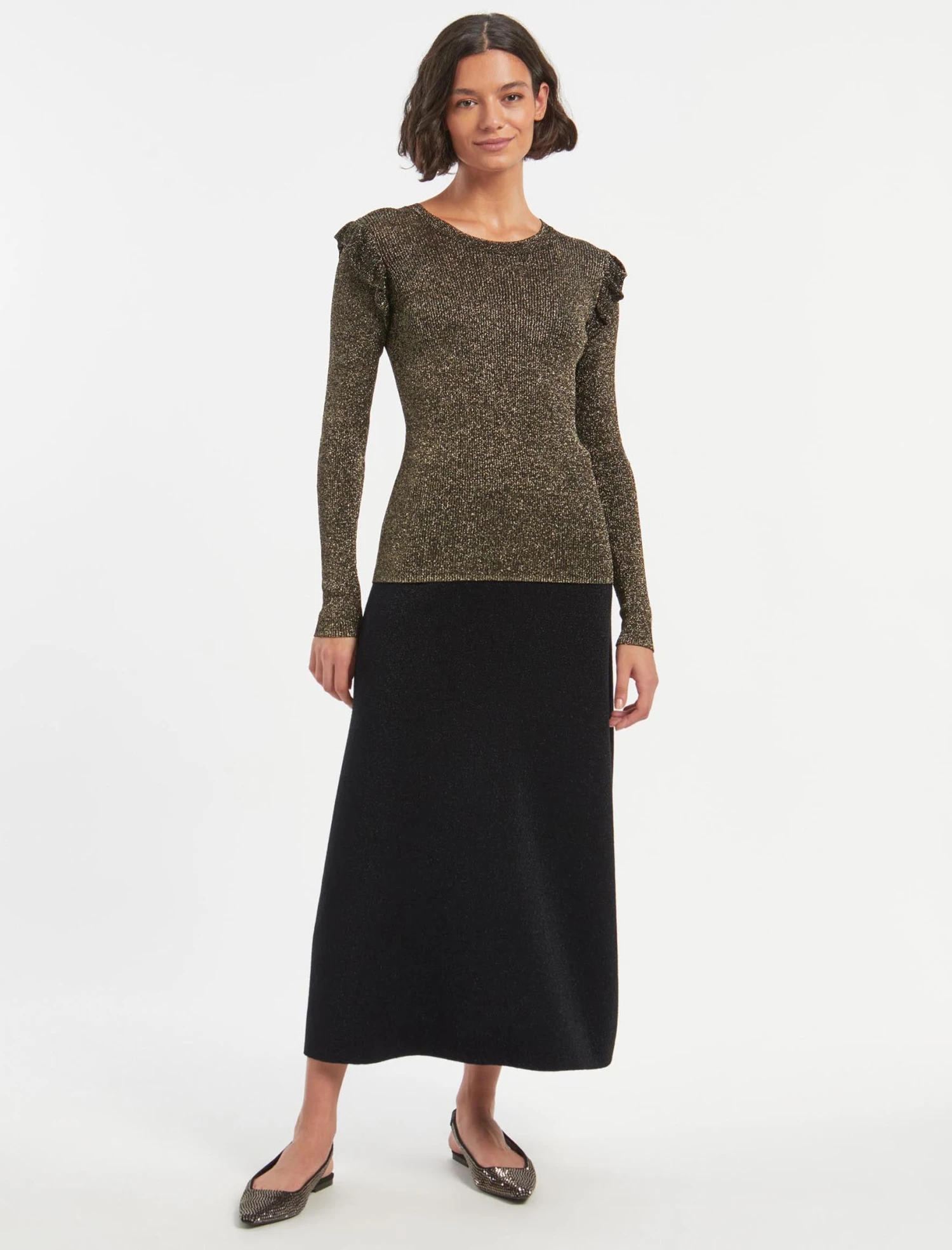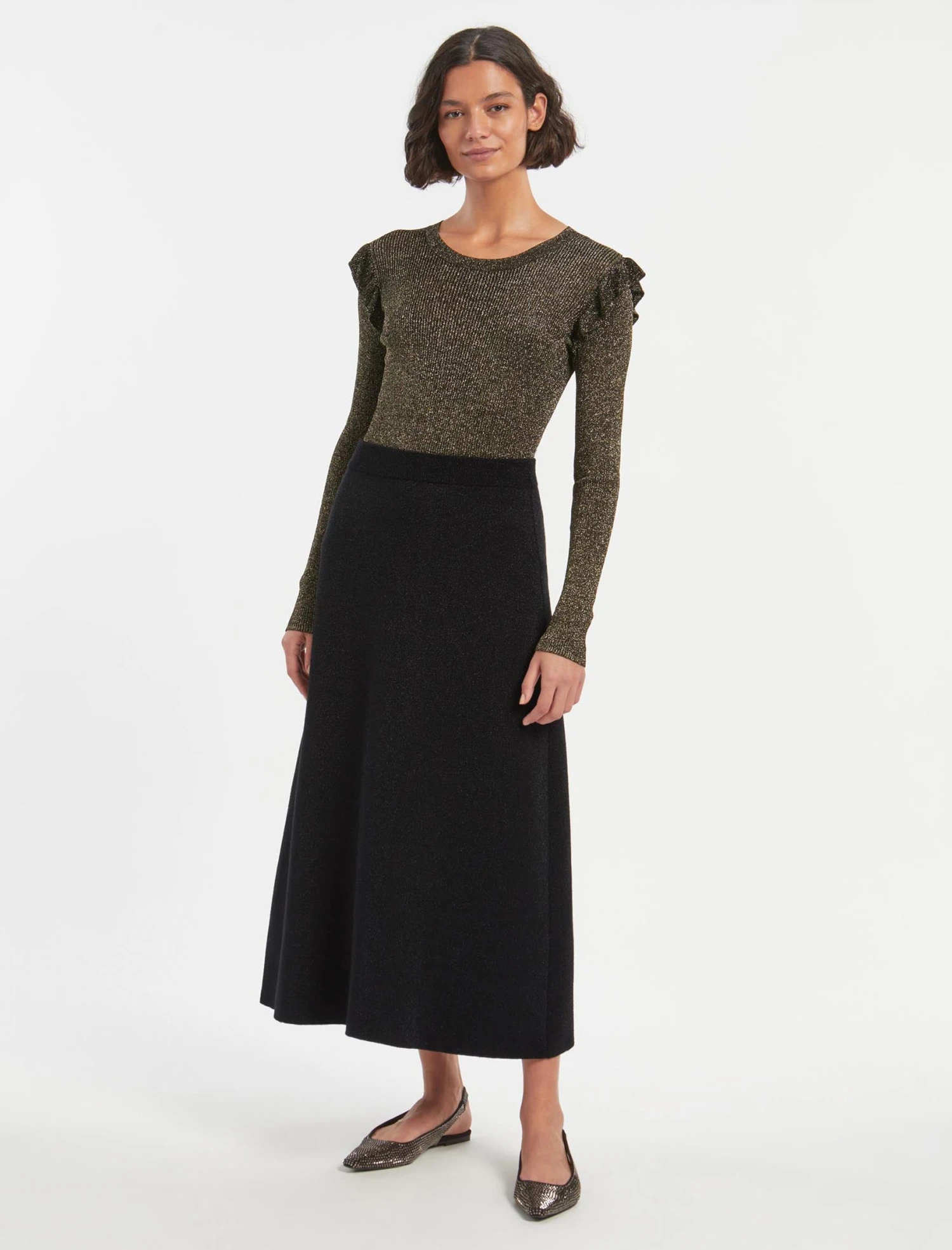 Cut from a heavy, double-face knit with a sparkly Lurex yarn, our Sasha skirt is structured yet effortless to wear (not to mention warm) for the winter. Ideal for more casual evenings with our matching Josie top, tone it down for daytime with a chunky knit.