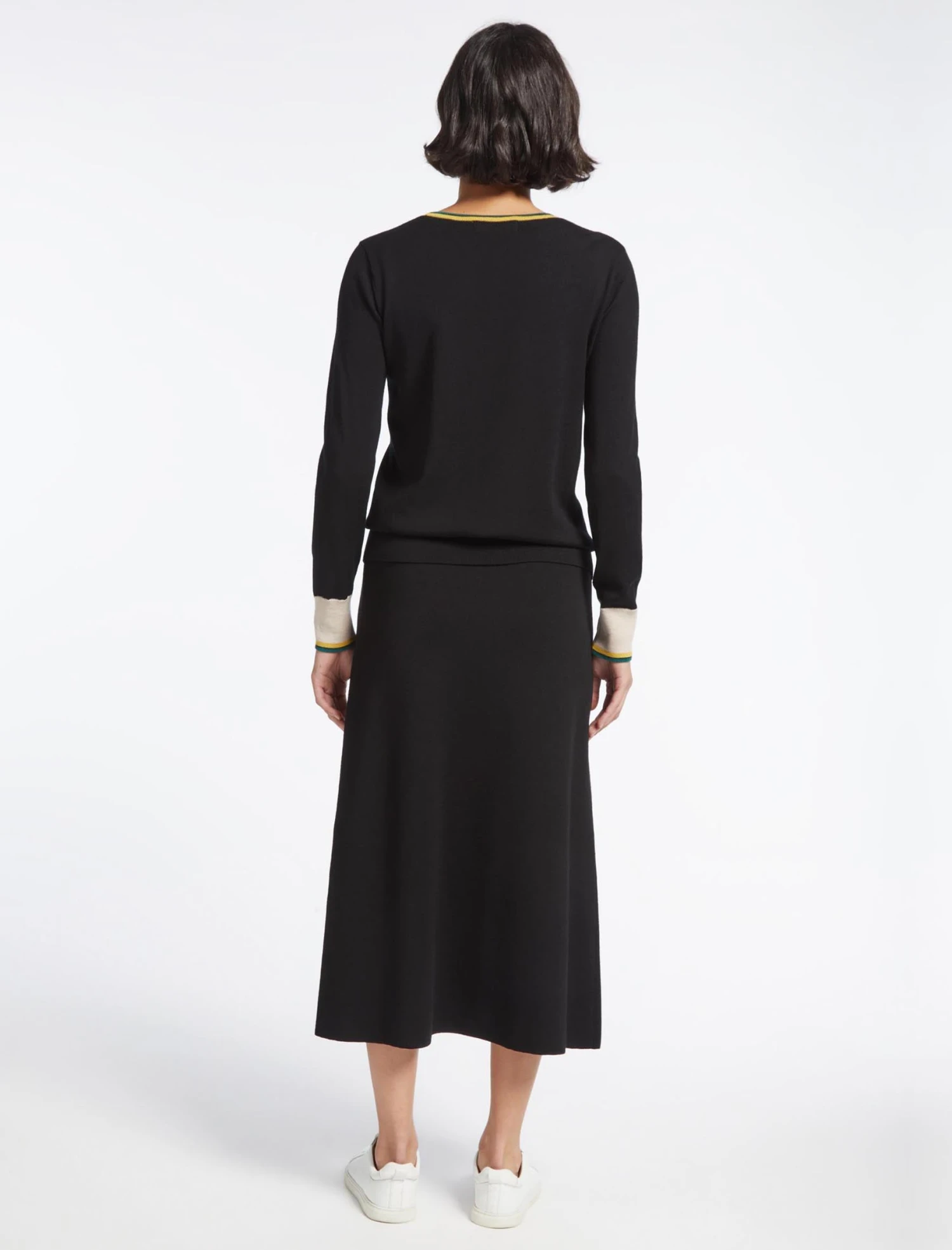 Who doesn’t love the ease and warmth of a knitted skirt? Cut to a flattering A-line silhouette, the mid-length Sasha skirt feels feminine and stylish, even on the chilliest of days. Designed in a machine-washable merino wool with a slight stretch, the elasticated waist and weightier feel add to its versatility. Wear with our Josie or Olivia jumper, a boot and tights, changing to a trainer or ballet pump in spring.