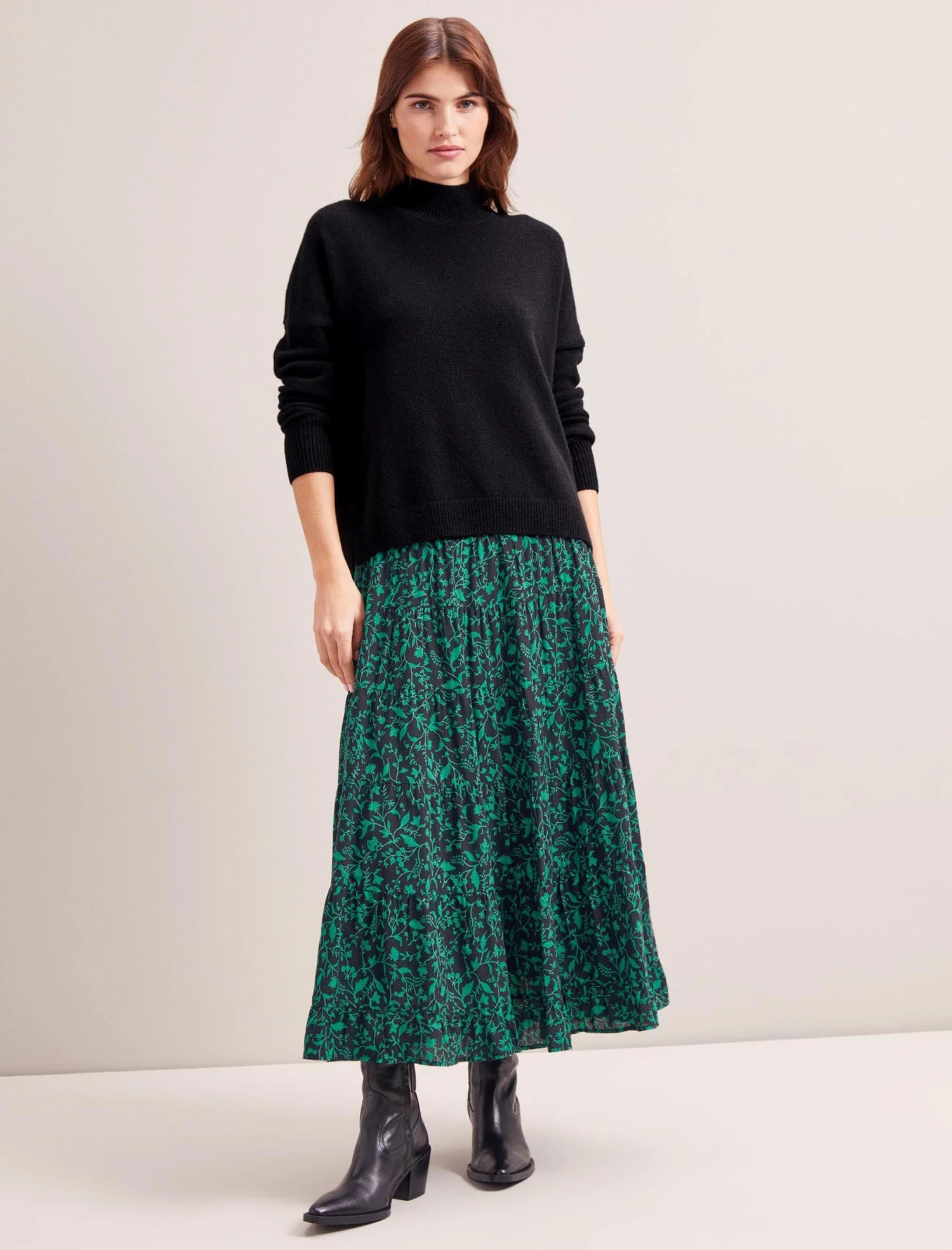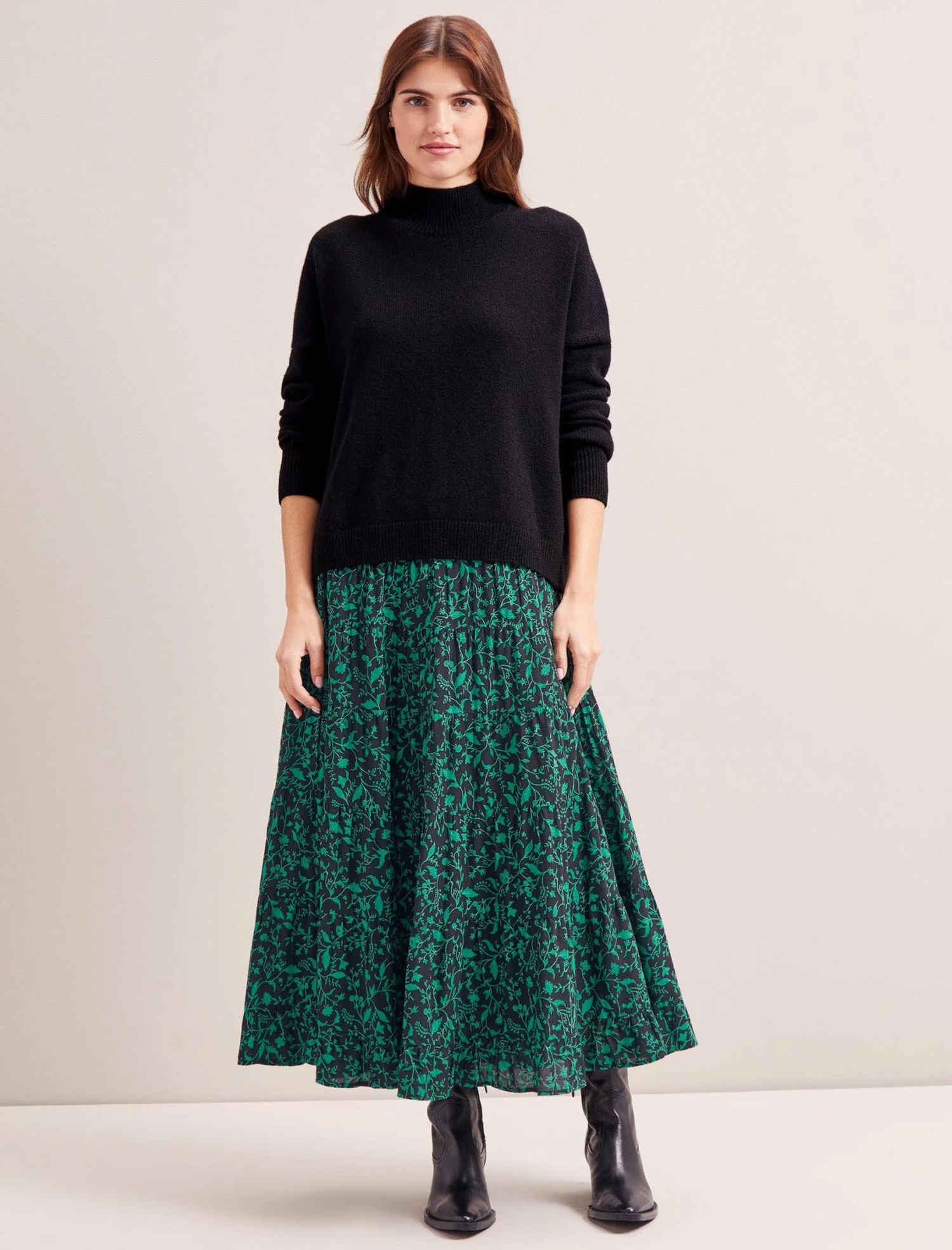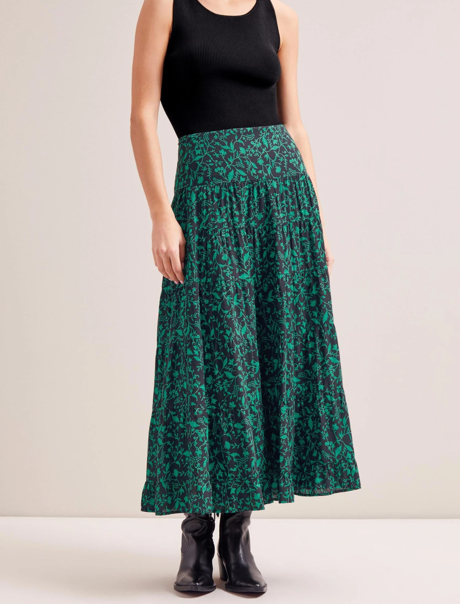 Sawyer Cotton Maxi Skirt – Green Bramble Print