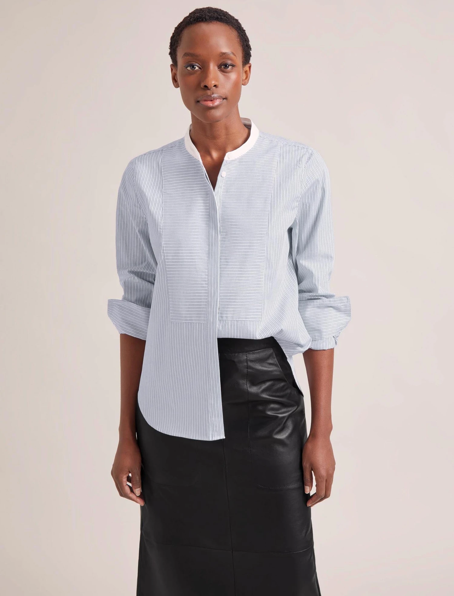 There’s a plain-speaking chic about the season’s most wearable looks. Take our Sefton organic cotton striped shirt. Worn with baggy blue denim and a trench coat it may look simple but on closer inspection, superior details such as the placket sleeve and bib elevate it from basic to boardroom ready.