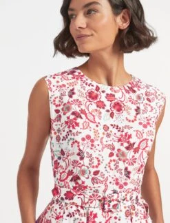 Thandie Organic Cotton Midi Dress – White Red Large Floral Print