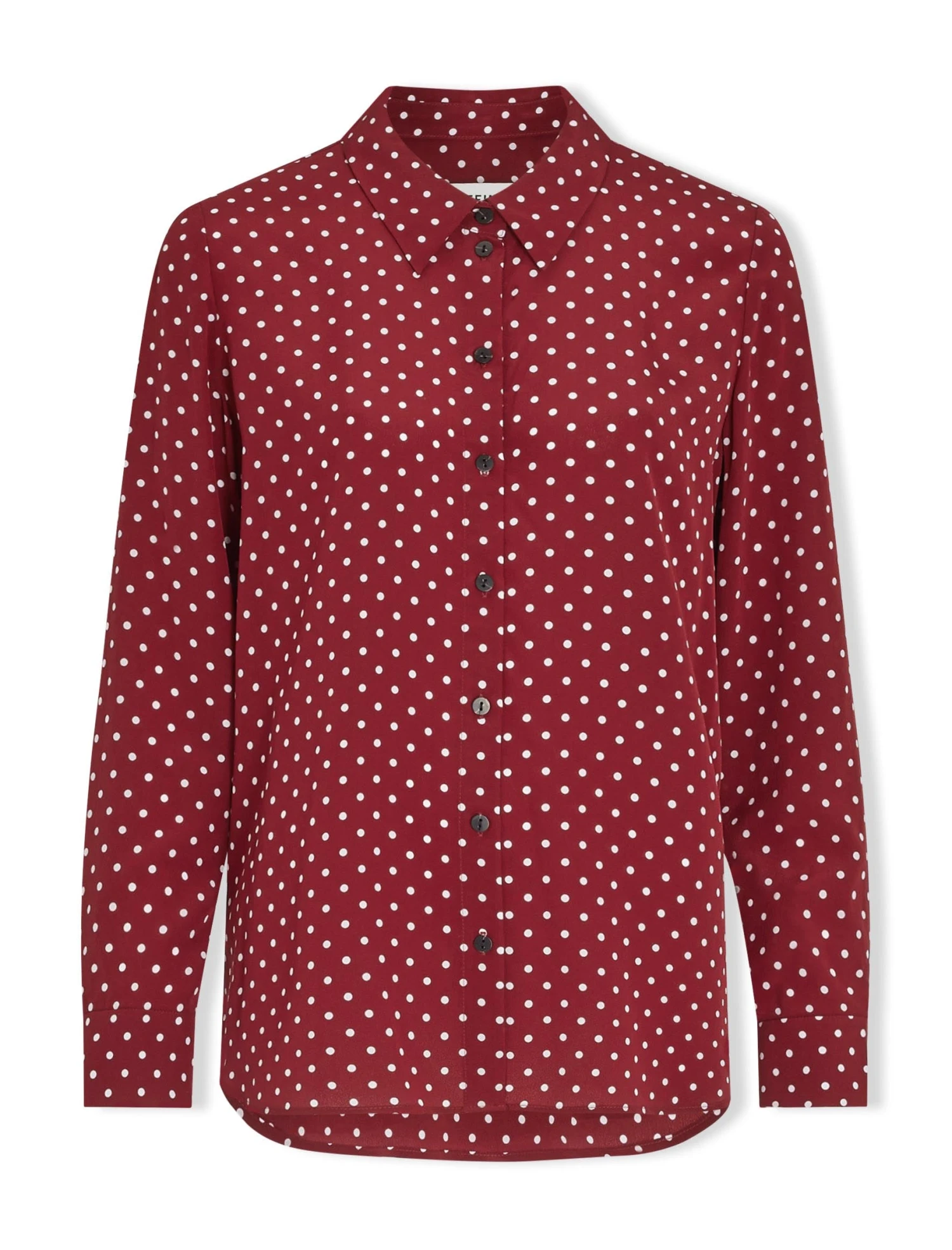 Who doesn’t love the cool elegance of a silk shirt? Meet Skyla, our new silk crepe-de-chine shirt in an on-trend polka-dot print. A chic spin on a classic style, tuck it into a black leather skirt or your favourite denim with a colour-pop lip and you will instantly feel polished and poised.