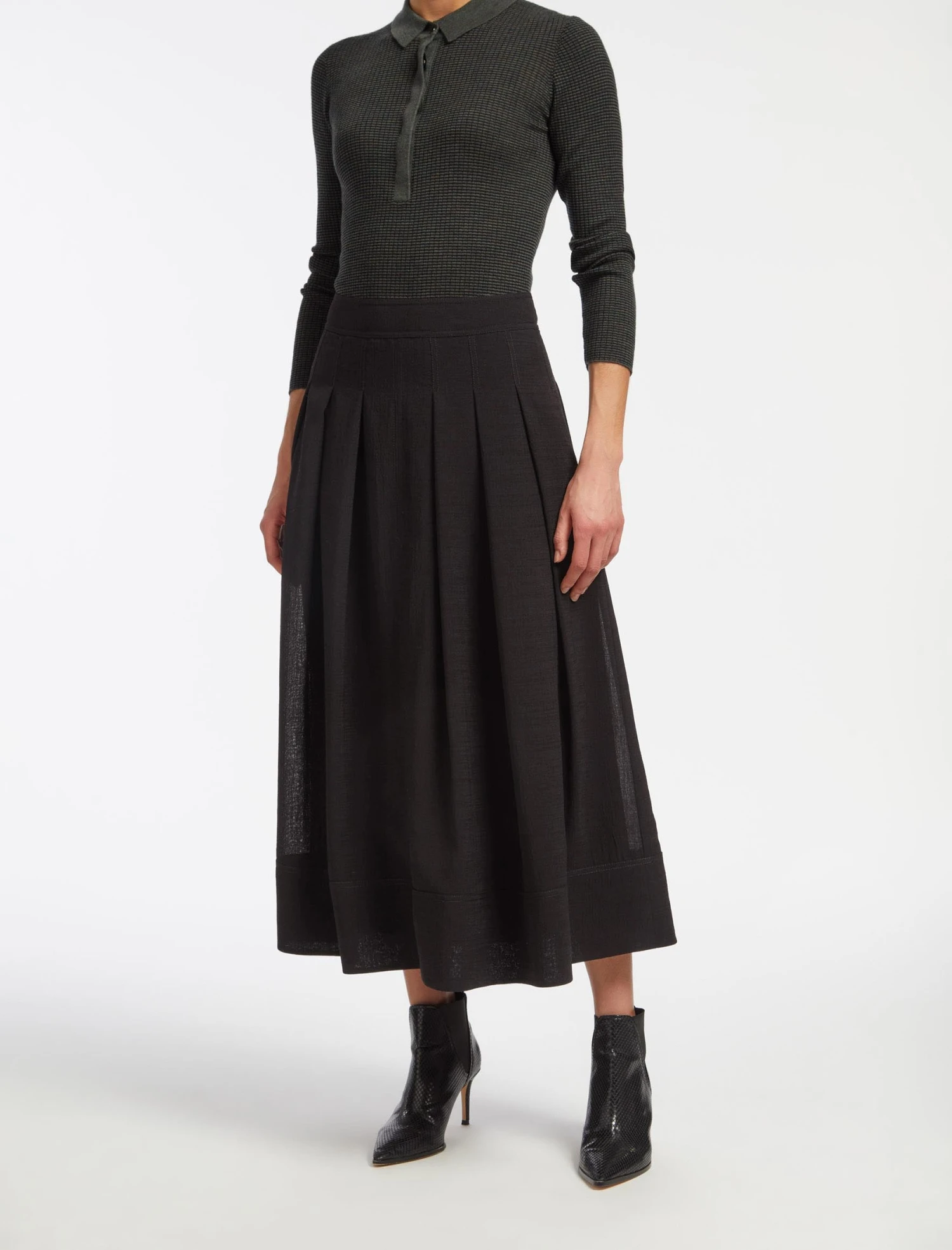 In recent seasons, hemlines have sat in two camps: thigh-skimming or floor-dropping. Our maxi Sophia style is a new staple for the modern wardrobe. Designed in our hero Techni Voile fabric (which will stay crease-free all day), it has box pleats for ease of movement – and to add that all-important swish. Try preppy styling with our Josie fine knit polo, a loafer and socks, or give it a feminine twist with our Stella blouse and a heel. The beauty of Sophia? She’ll work hard for you, whatever you pair with her.