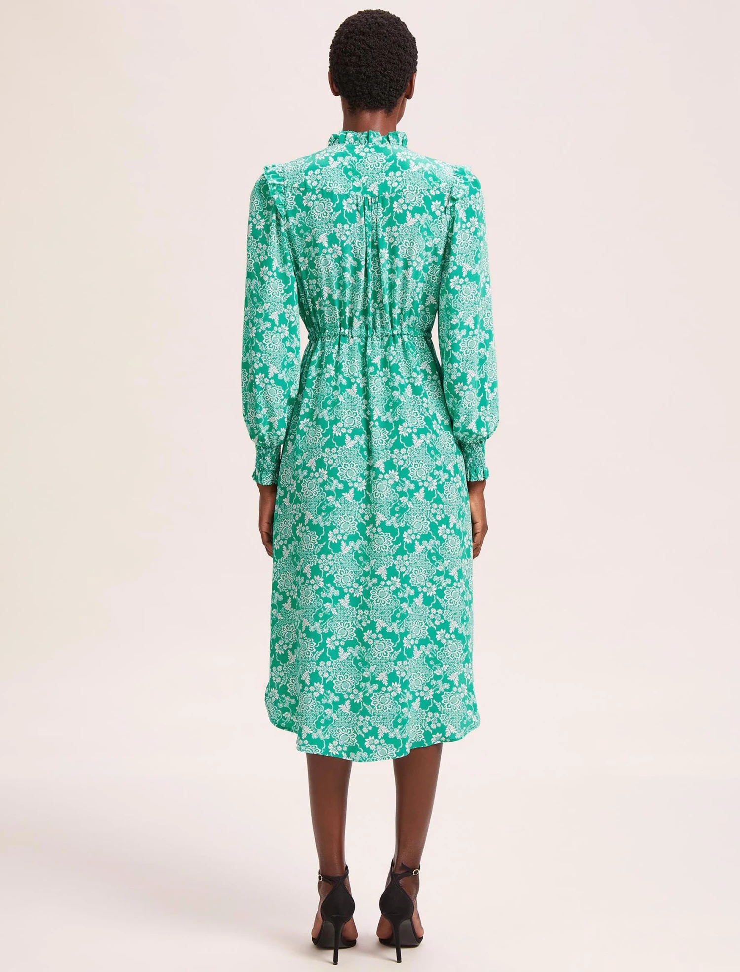 The Stella dress has earned iconic status thanks to the combination of its easy wearability and luxe feminine detailing. Cut from 100% silk crepe de chine, it has rouleau summarys, pretty shirred cuffs, and eyelash frill edging while the adjustable drawstring waist can be cinched in or worn loose and airy for a more relaxed look. Pair with strappy sandals for Ascot, summer weddings, garden parties and more!