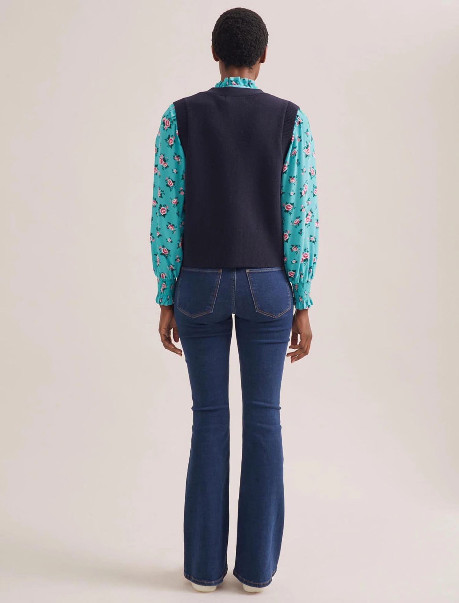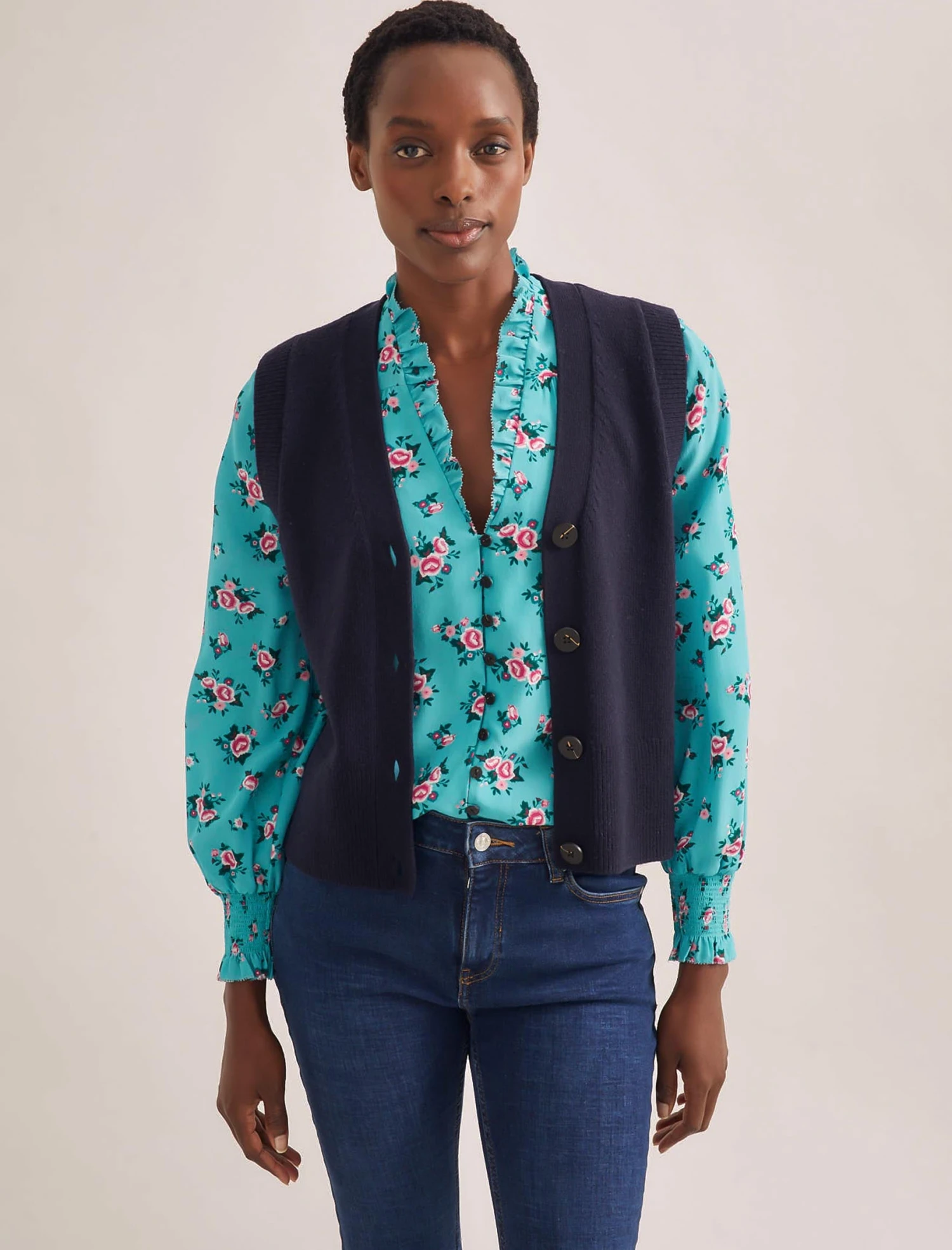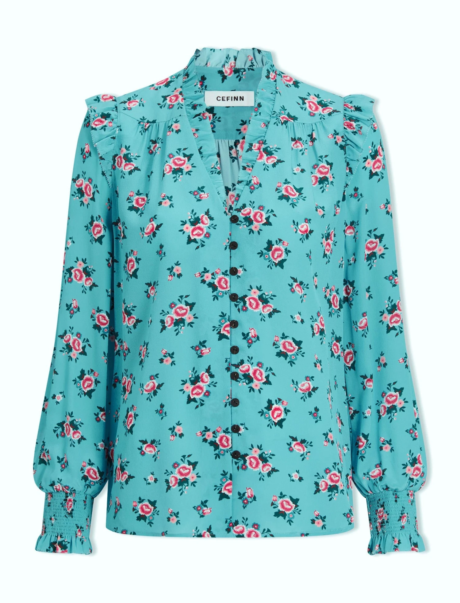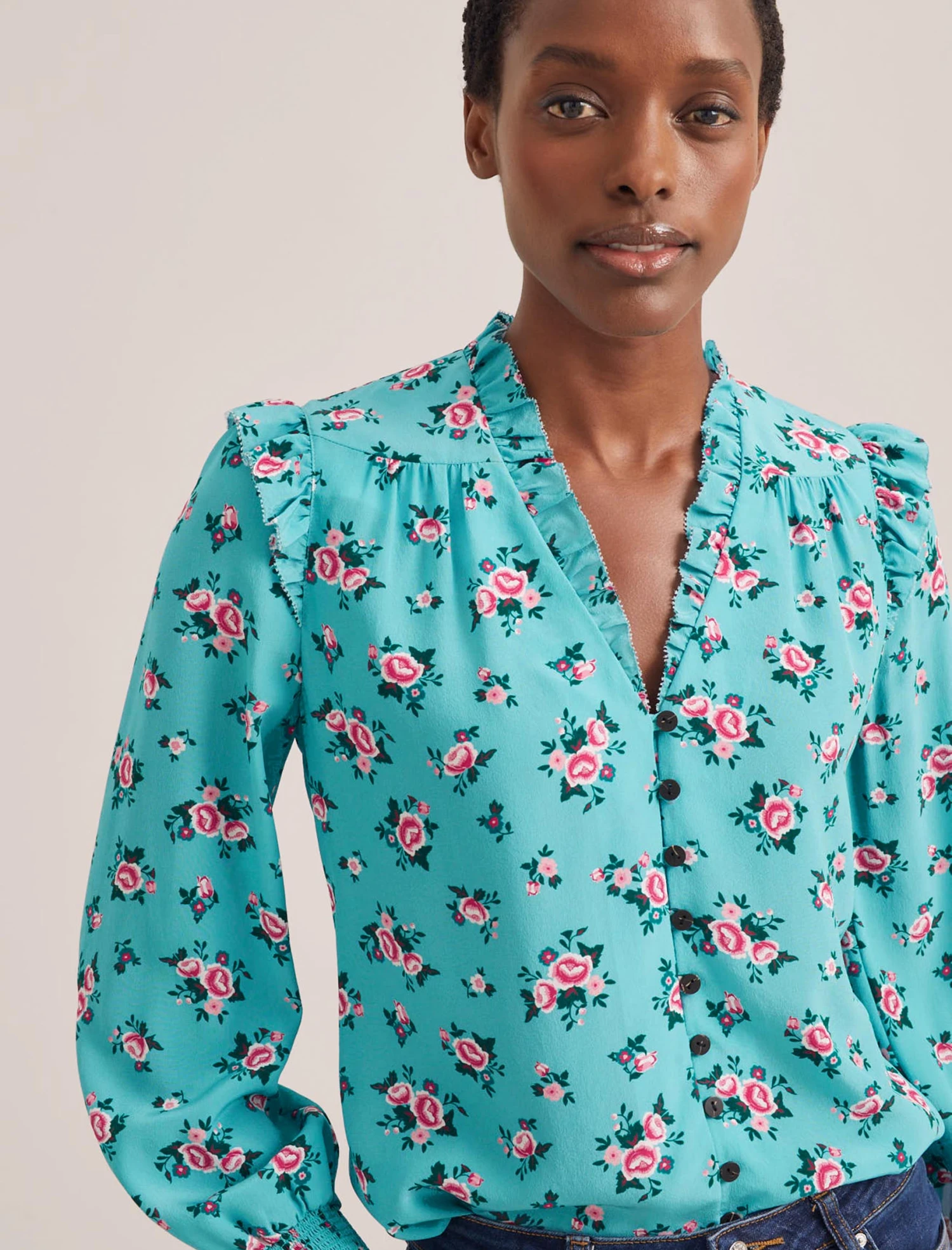 A rework of our bestselling blouse, Stella is made from rose-printed silk that transitions effortlessly from day to evening. The feminine style has a V-neckline with ruffle detailing, delicate rouleaux summarys and gathered detailing along the yoke and shirred cuffs. This versatile top pairs perfectly with a leather skirt, smart trouser and suiting alike.