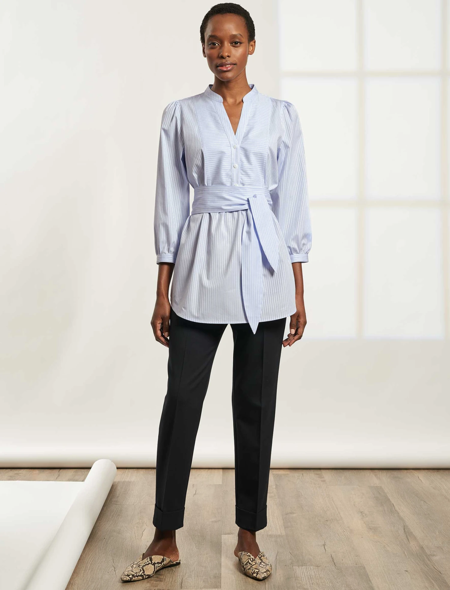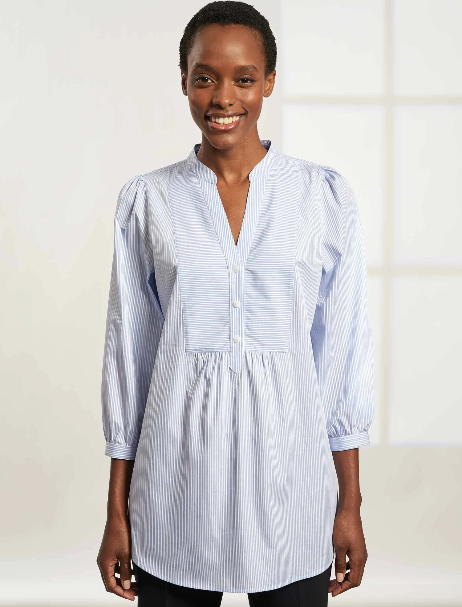 Stevie Cotton Shirt – Light Blue White Stripe