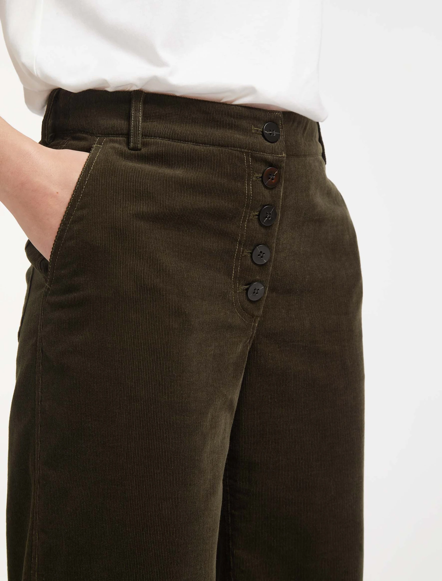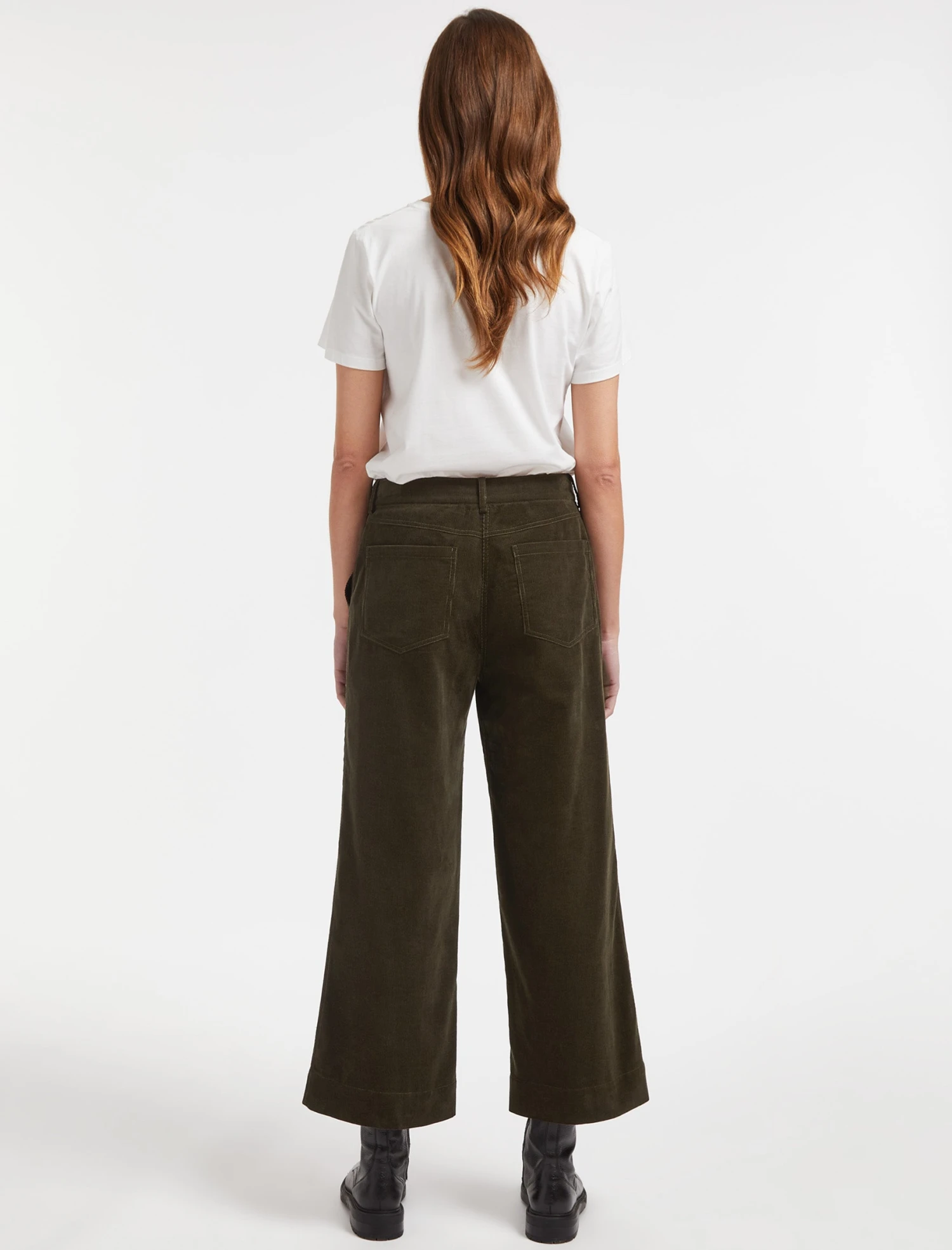 - High waisted, cropped kick flare trouser in stretch pin corduroy