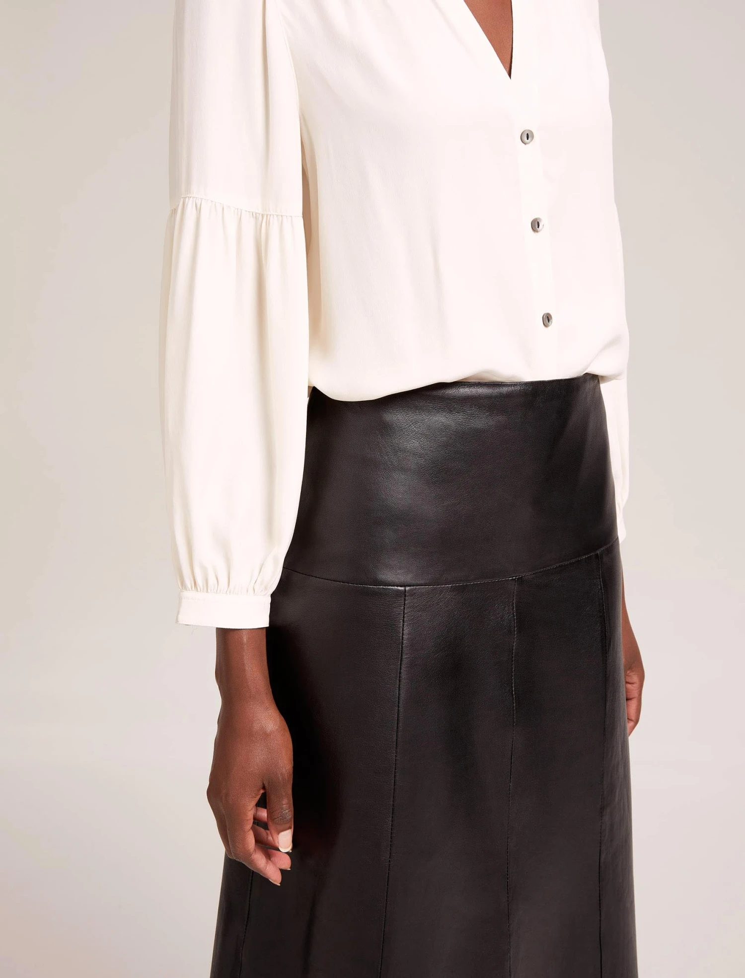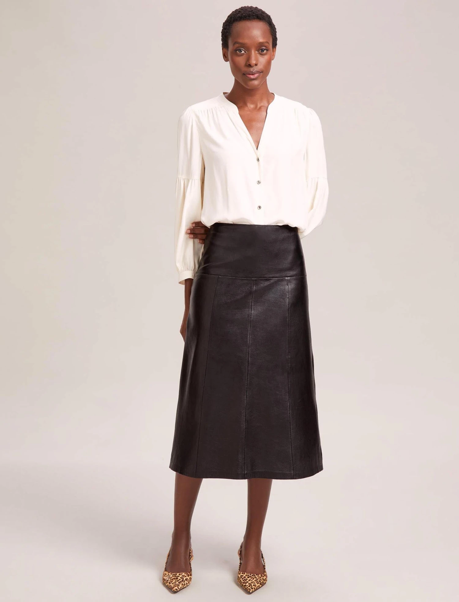 Classic, sleek and perennially stylish, our panelled butter-soft Tiana leather skirt will be one of the most versatile pieces in your wardrobe this season. Paired with a crisp white blouse or our Stella silk shirt and a sharp boot or point, it makes 9-5 dressing a breeze. Play to its rebellious side on downtime days with a box-fresh trainer, a vintage rock tee and undone hair.