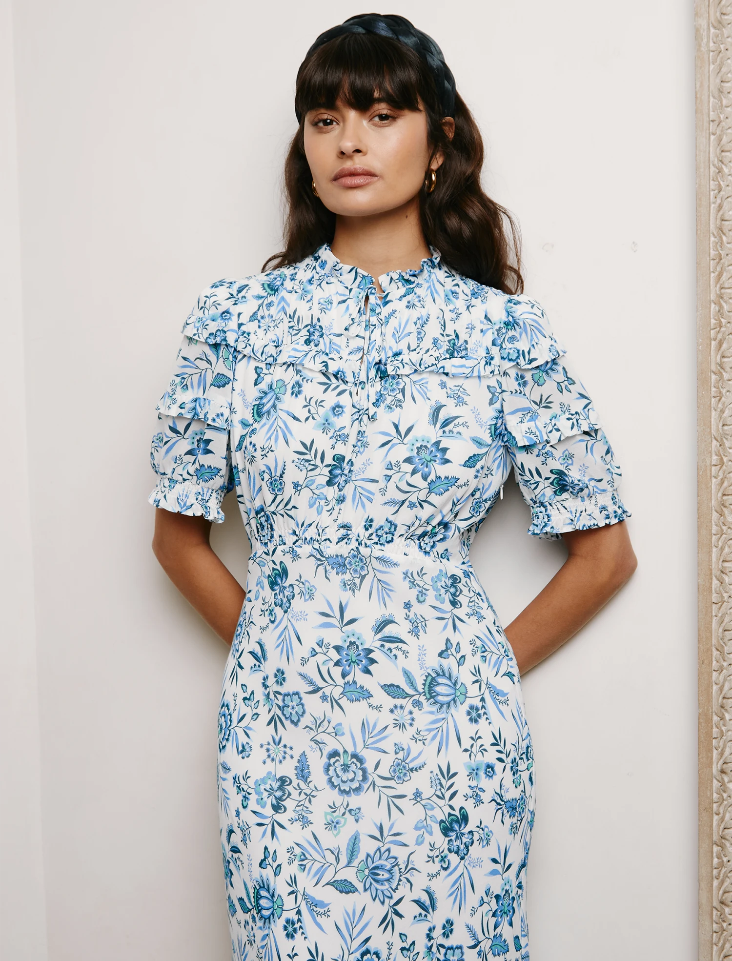 A reimagining of our sell-out Voletta dress, the Viola takes inspiration from timeless vintage style. With pretty ruching, softly shirred sleeve, a flattering empire line with bias-cut skirt and an adjustable neckline that can be worn open or closed, this dress delivers for weddings, summer celebrations, Ascot and more.